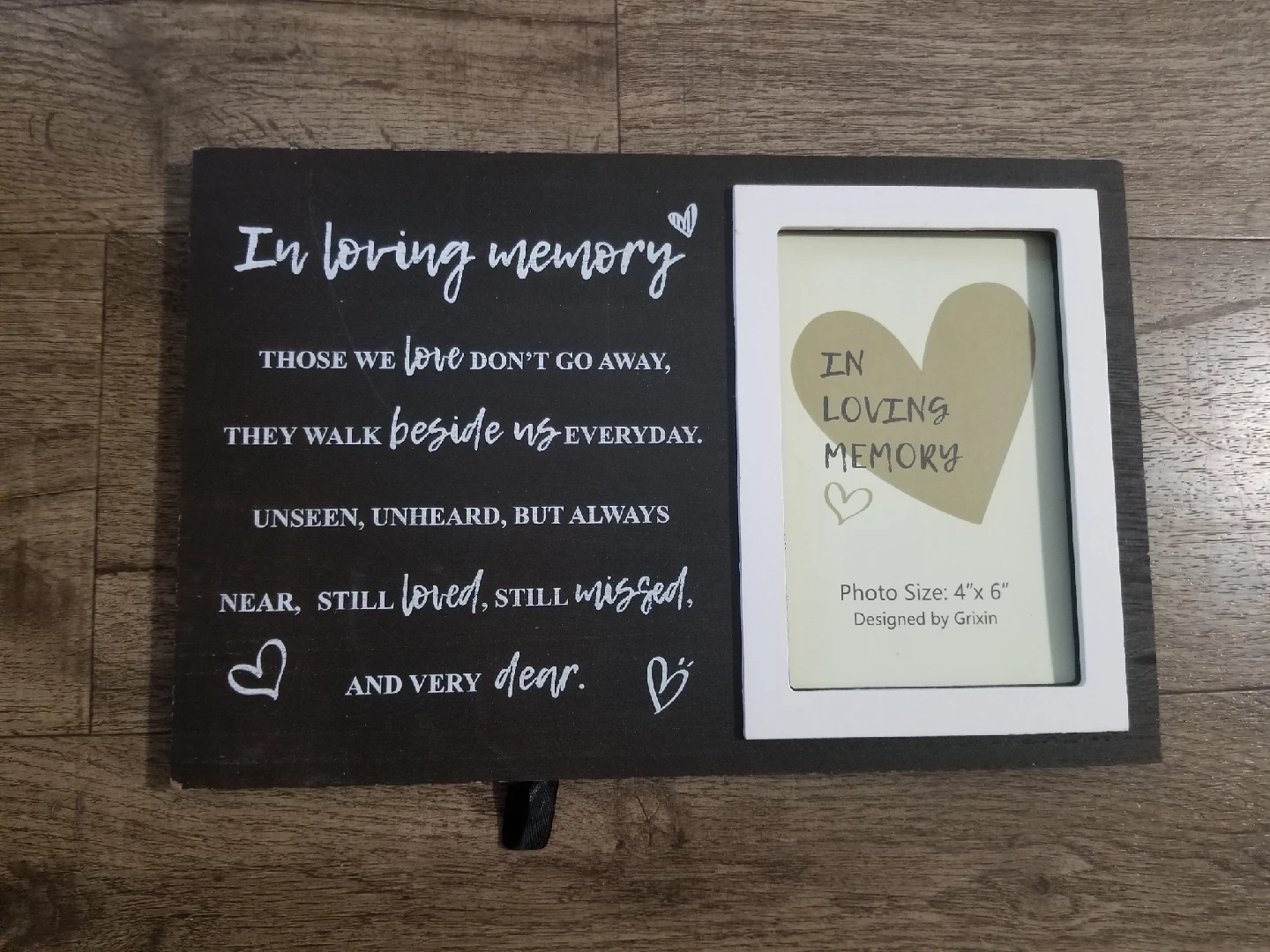 Selling a picture frame that says "In loving memory". It holds a 4x6 inch photo. Brand new