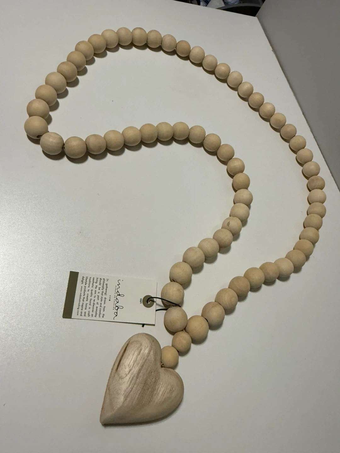 Add a touch of natural charm to your space with this Indaba wooden bead garland. It features a lovely wooden heart accent. Perfect for draping over shelves, mantels, or anywhere you want to add a cozy, rustic feel