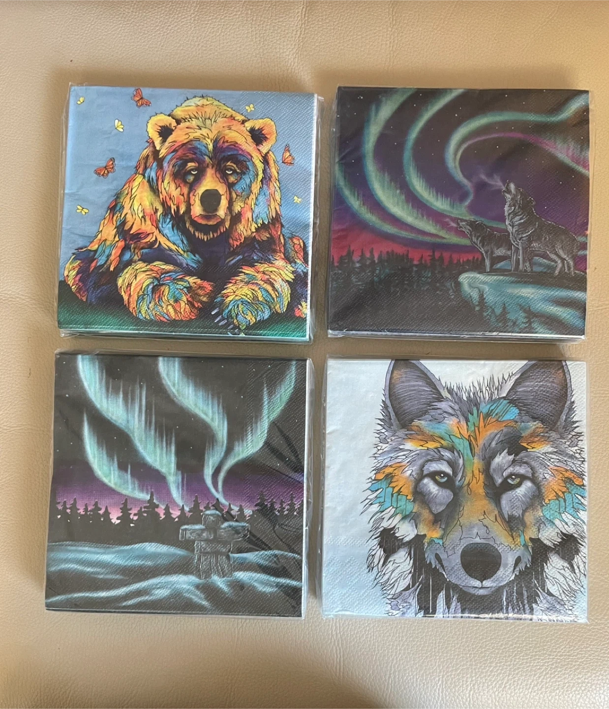 Selling a bundle of four packages Indigenous Collection paper napkins. . 6.25" x 6.25" w 16.5 x 16.5 cm printed on all four sides luncheon size 20 per package designed in Canada All artists have been paid a royalty for the sale of these napkins . New retail is 7.00+ for each package Price is 15.00 for all 4 packages Accepting etransfer for guaranteed hold and cash transactions are FCFS. . Located in Osborne Village with easy accessible driveway for pickup