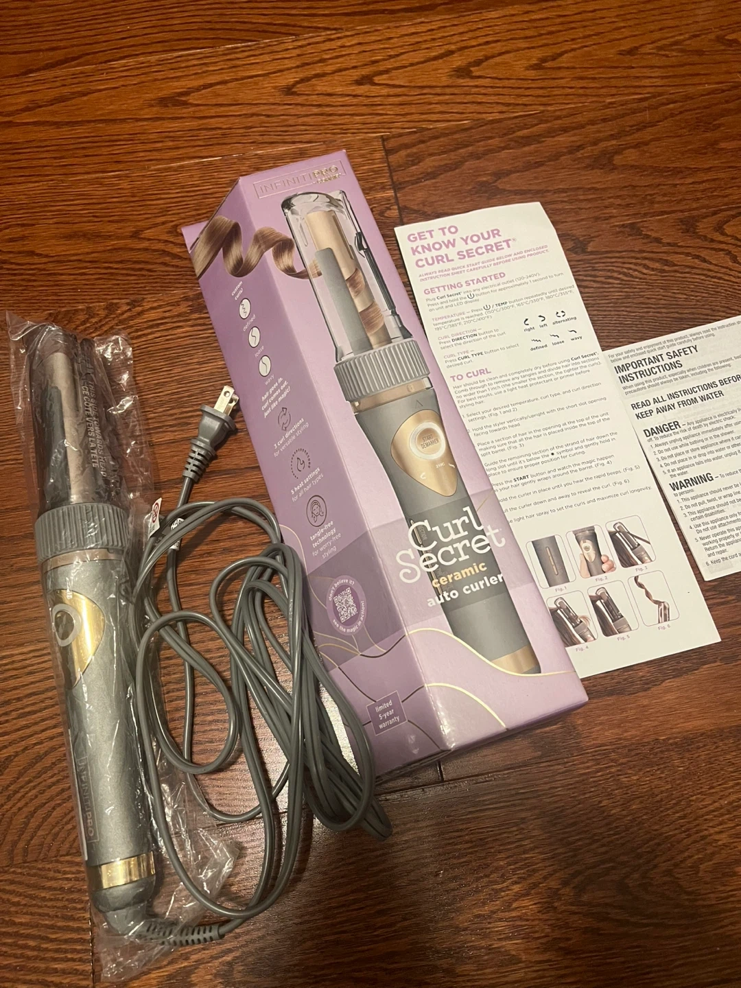Selling an INFINITI PRO Curl Secret ceramic auto curler! It comes with the box and instructions. This curler is designed to effortlessly create beautiful, long-lasting curls with its automatic curling technology. The ceramic barrel ensures even heat distribution, reducing damage and leaving your hair smooth and shiny. Opened but never used.