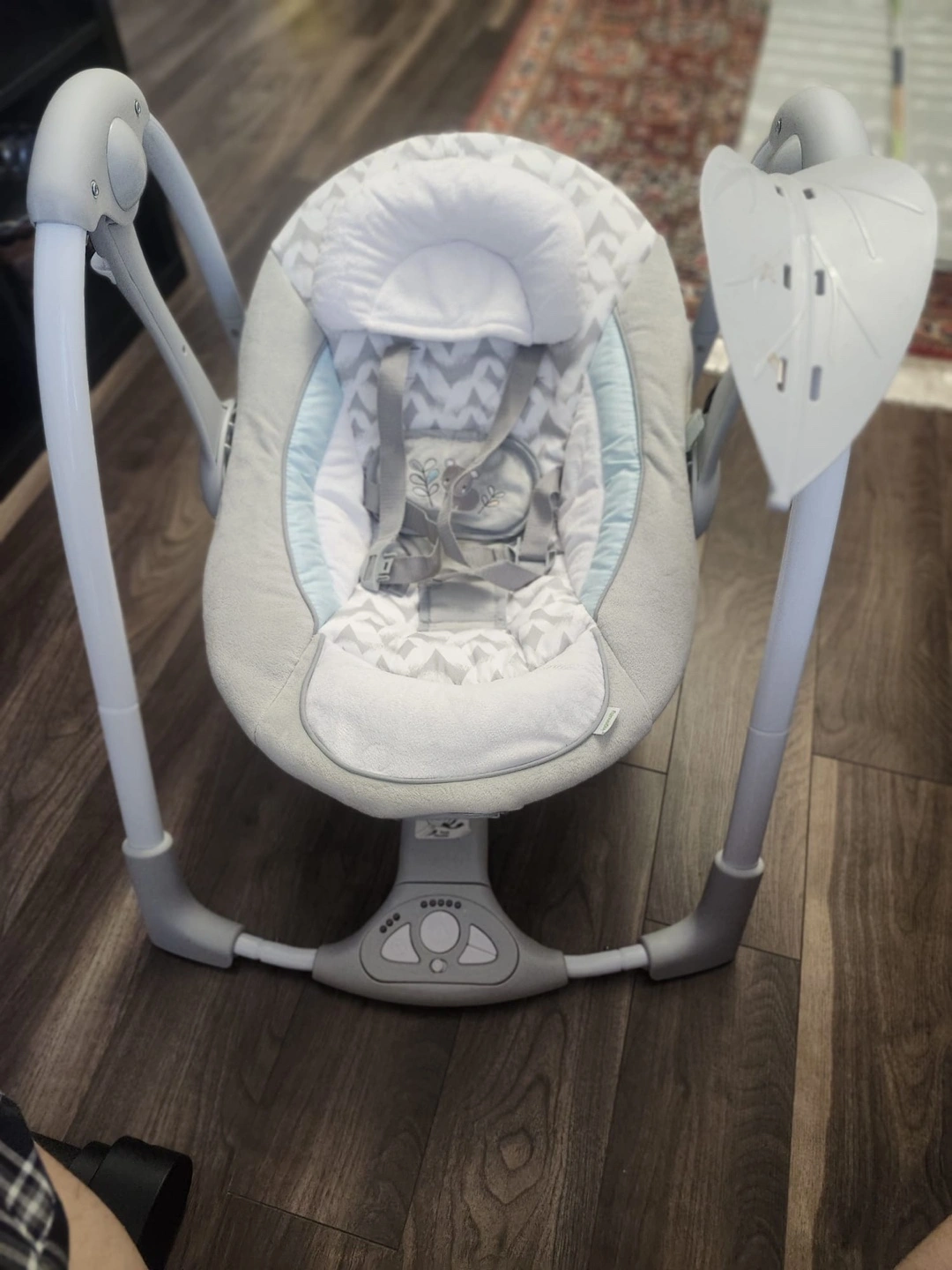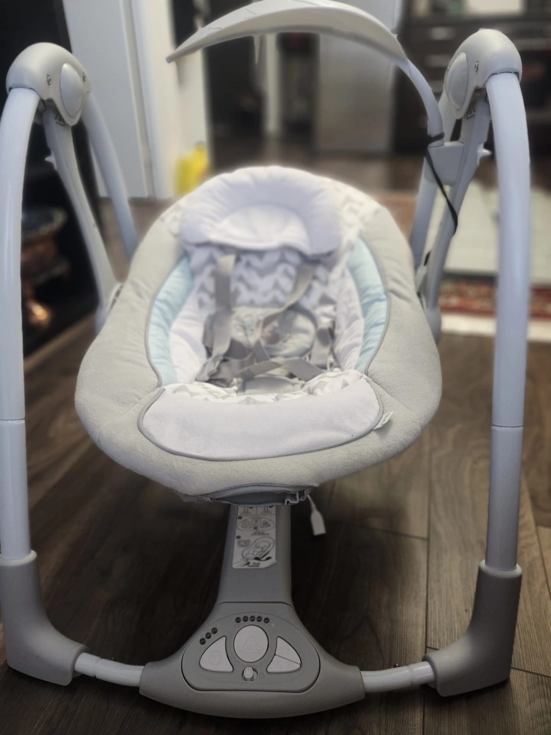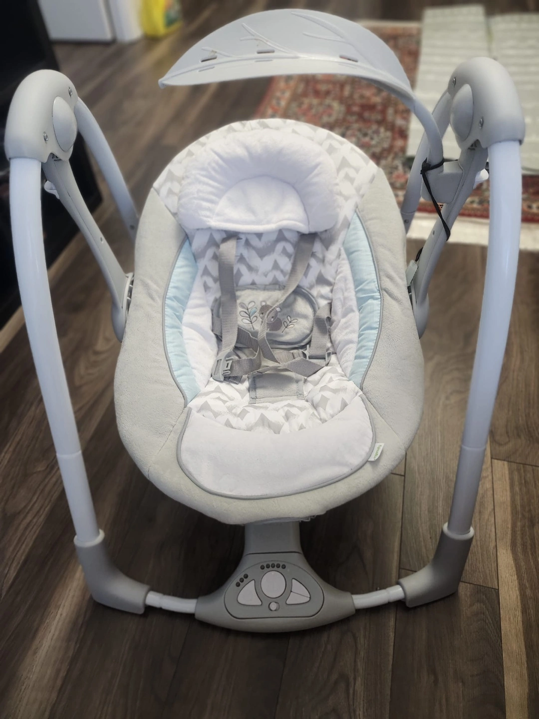 Selling a gently used Ingenuity ConvertMe Swing-2-Seat in grey. It's in great condition and ready for a new home! This swing easily converts to a seat, offering versatility as your little one grows. It's perfect for soothing and entertaining your baby with its gentle swinging motions and comfortable seat.