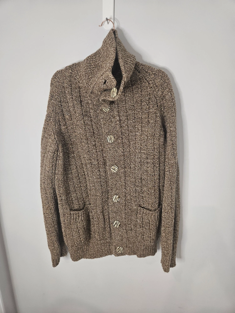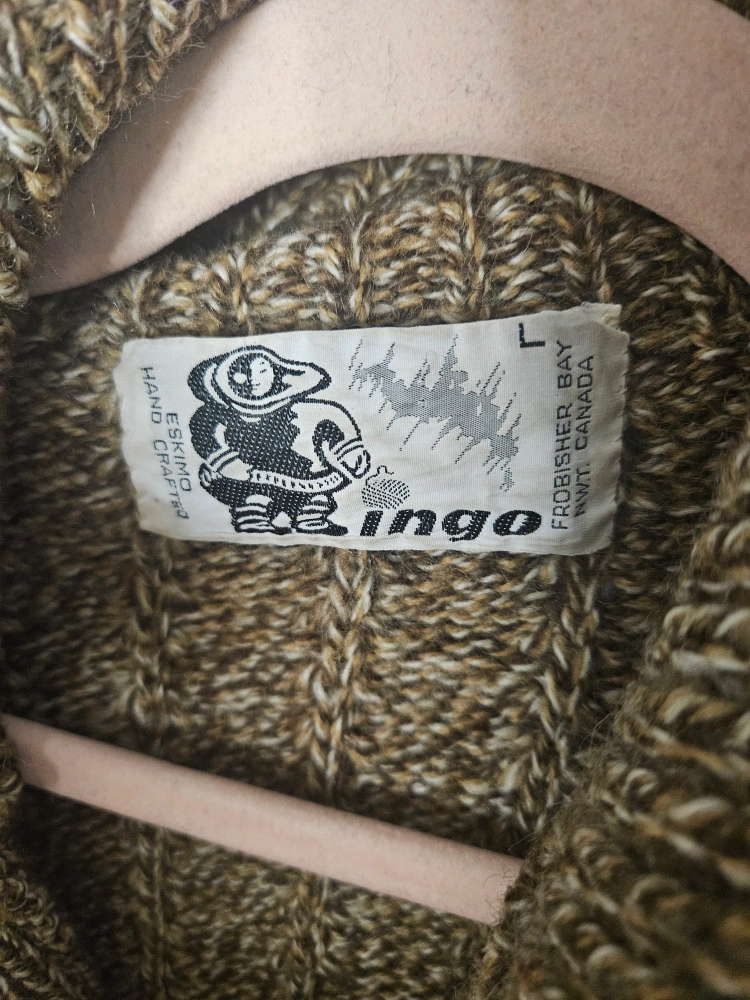 Cozy up in this Ingo Eskimo hand-crafted cardigan! It's a size L and features a unique button-up design with pockets. Perfect for adding a touch of warmth and style to your wardrobe! Like new.