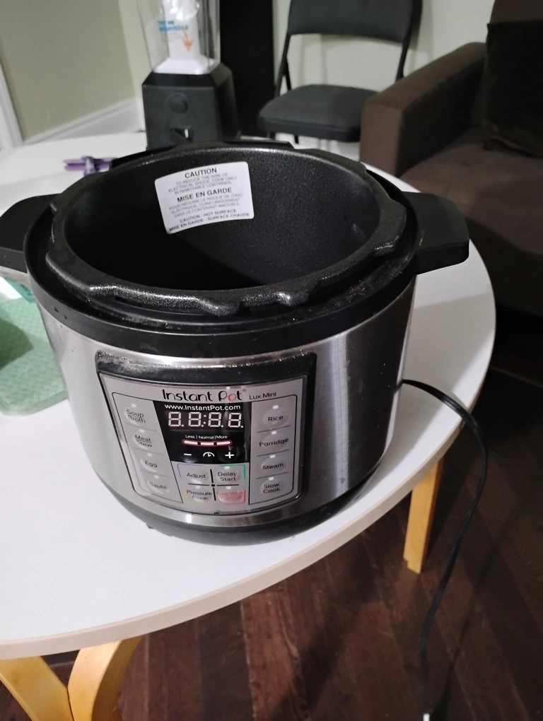 Selling an Instant Pot Lux Mini! It's in great shape and ready for a new home. Perfect for cooking up delicious meals with ease. It has settings for soup/broth, meat/stew, egg, rice, porridge, steam, and slow cook. selling to buy a bigger model.