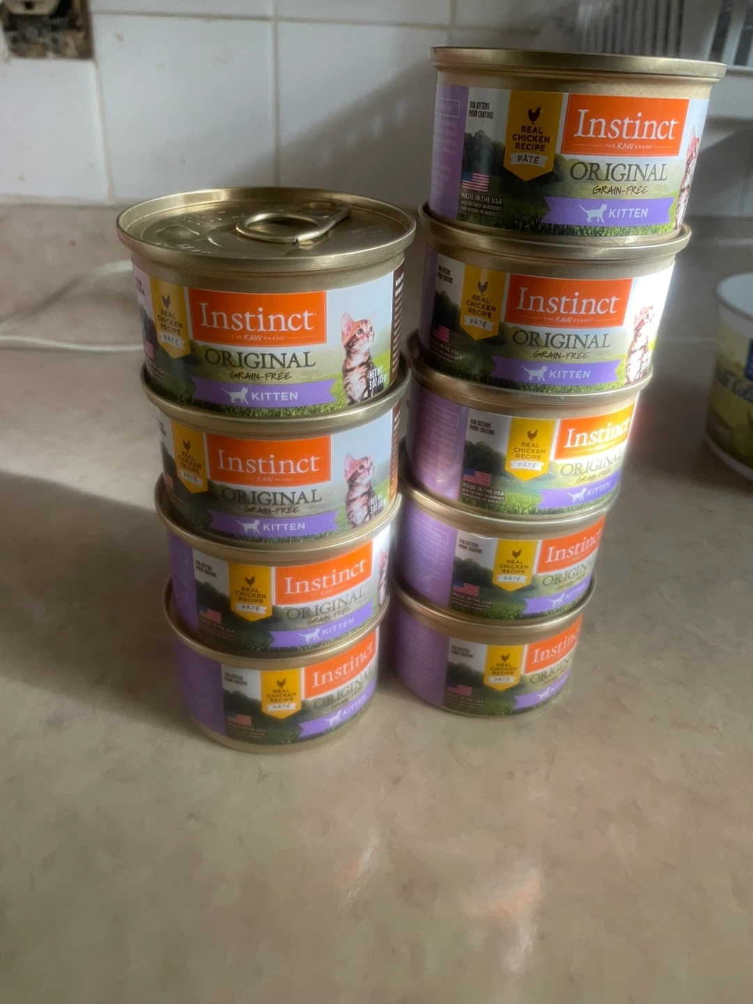 Selling a stack of Instinct Original Grain-Free Pate for Kittens! These are the chicken recipe. Expiration dates vary, with some expiring in February 2028 and others in December 2027