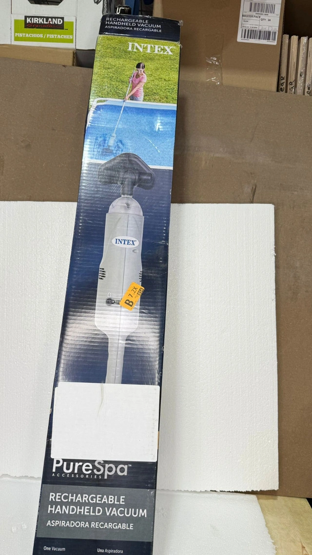 Intex handheld pool vacuum cleaner with a rechargeable, cordless design. It features a 94-inch telescoping shaft and 2 interchangeable brush heads. Perfect for above ground pools and spas. Tested and clean. Cross-posted on other platforms. Cash or e-transfer accepted. Available until sold.