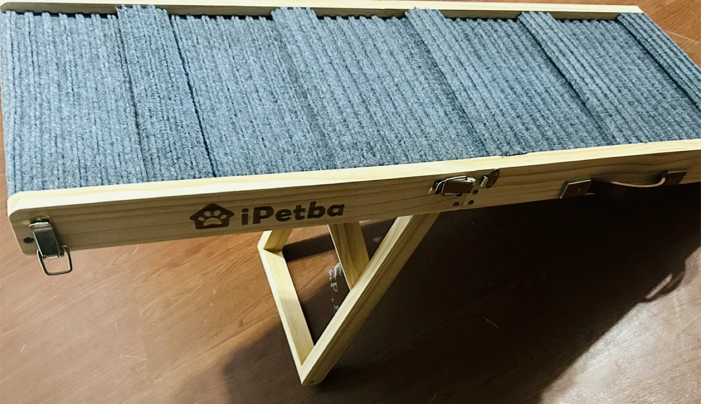 Selling a brand new iPetba portable folding pet ramp! The ramp is grey and features a wooden frame. It's perfect for helping your furry friend reach higher places with ease