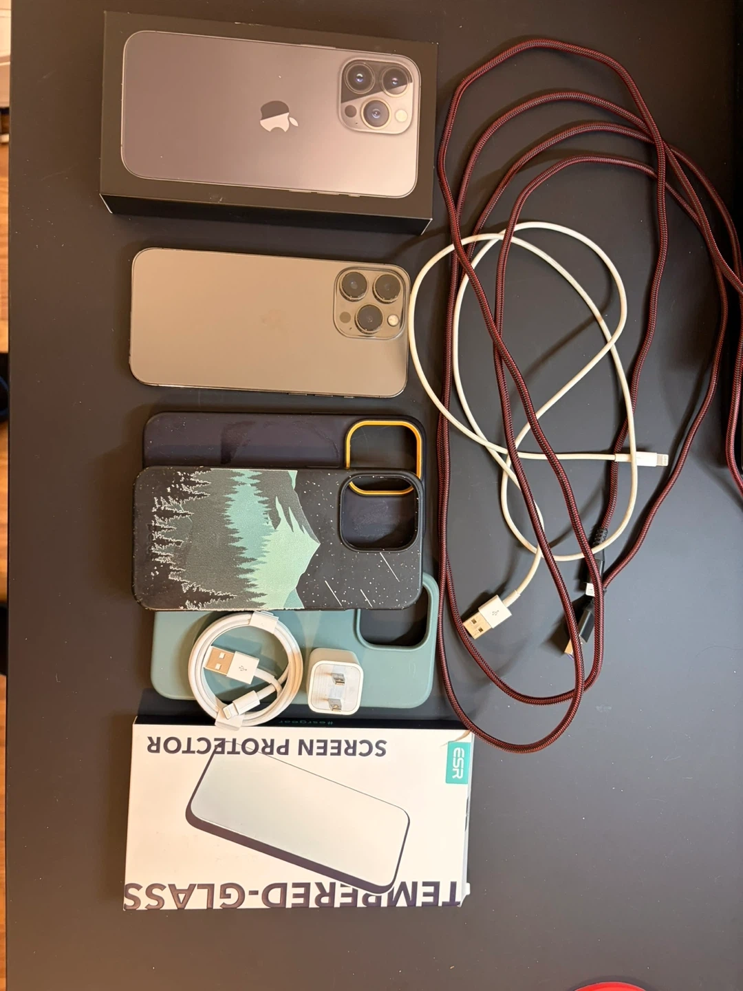 I’m selling my iPhone 13 Pro Phone which is in excellent condition. It has lived in a case the whole time with screen protector Unlocked - will work with any carrier - physical SIM slot and eSIM compatible Battery life 79% Comes with care package of items including: - 3 MagSafe cases (one Pela brand) - Extra screen protectors - brand new Apple lighting to usb cable (from box never used) - Apple Wallplug (North America) - 3 meter nylon braided cable - extra apple lighting to usb cable - original iPhone 13 Pro box with all papers and SIM card pin