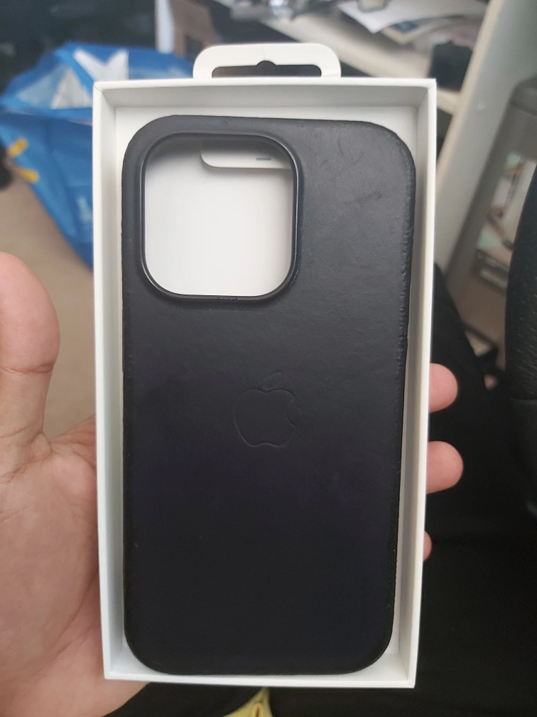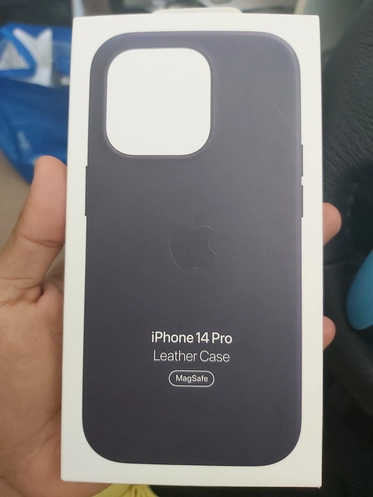 Selling an iPhone 14 Pro Leather Case with MagSafe. The case is in great condition and comes with the original box. It's a sleek and protective case for your phone!