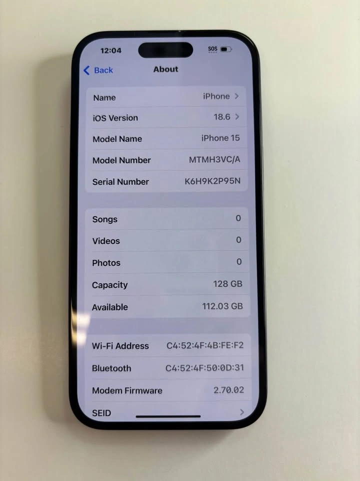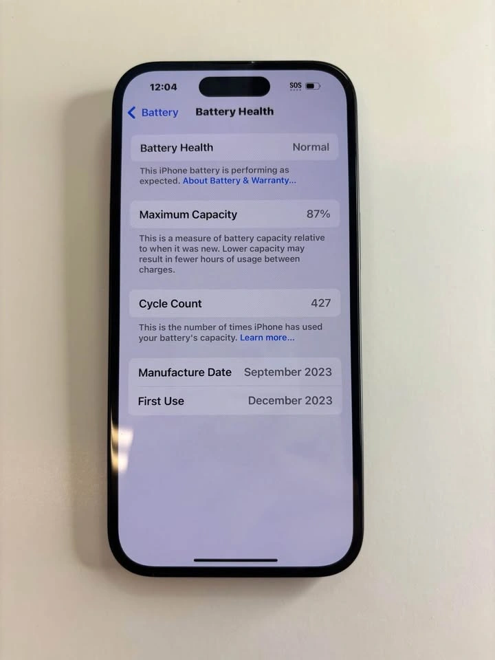 Apple iPhone 15 128gb Black Unlocked Fantastic Condition Battery Health: 87% (see photo for Apple Battery Health screen) Condition: Screen is flawless, one small chip on your the top of the frame and back glass is flawless. Message any questions This iPhone 15 is fully tested and 100% functional. It has been **factory reset** and is ready for a new owner (no iCloud account tied to the device). The phone is unlocked (IMEI is clean, and it can be activated on any network.) It is an original Apple device – **no parts have been replaced**