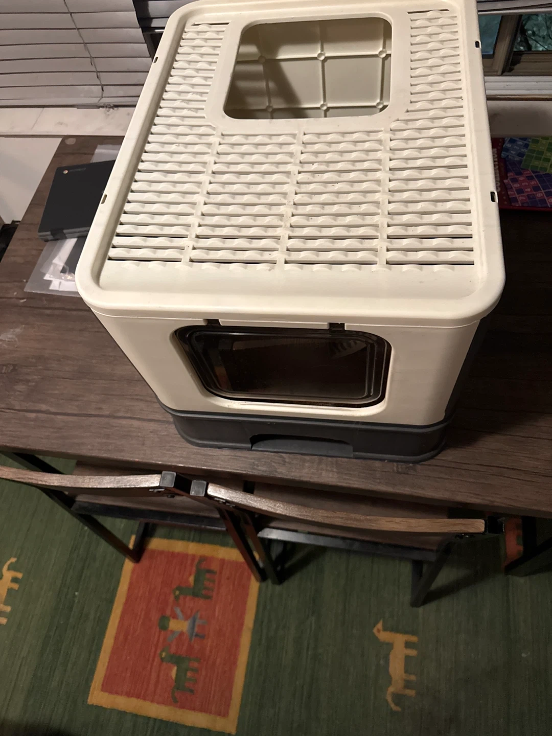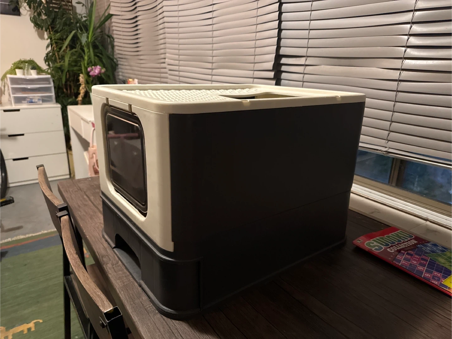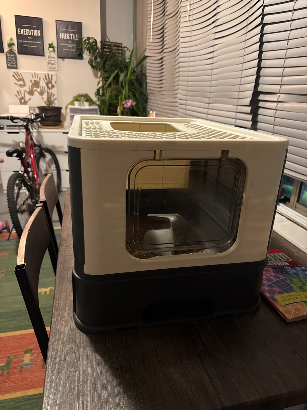 Selling an IRIS USA top entry cat litter box! It's in great condition and keeps the litter contained. The top entry design helps prevent messes and spills, and it's easy to clean. Perfect for keeping your home tidy and your kitty happy!