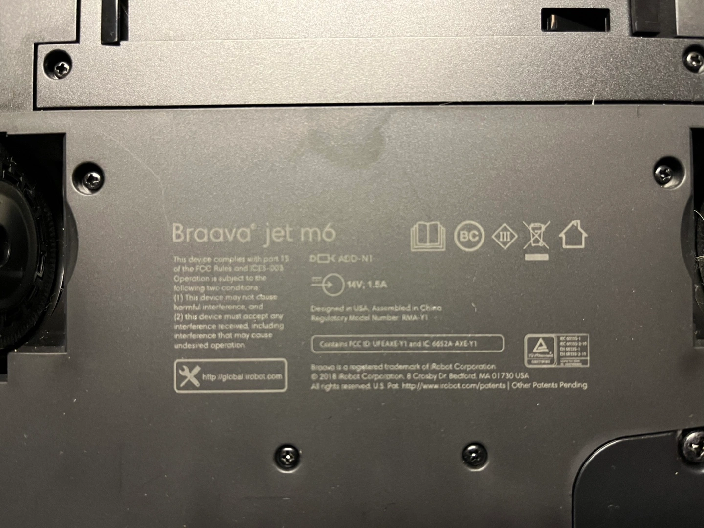 iRobot Braava Jet M6 Model 6652A Excellent Condition Like NEW Maybe used 4 times tops and was then forgotten about in corner Box of floor pads inc Smoke, Pet and Scent Free Home