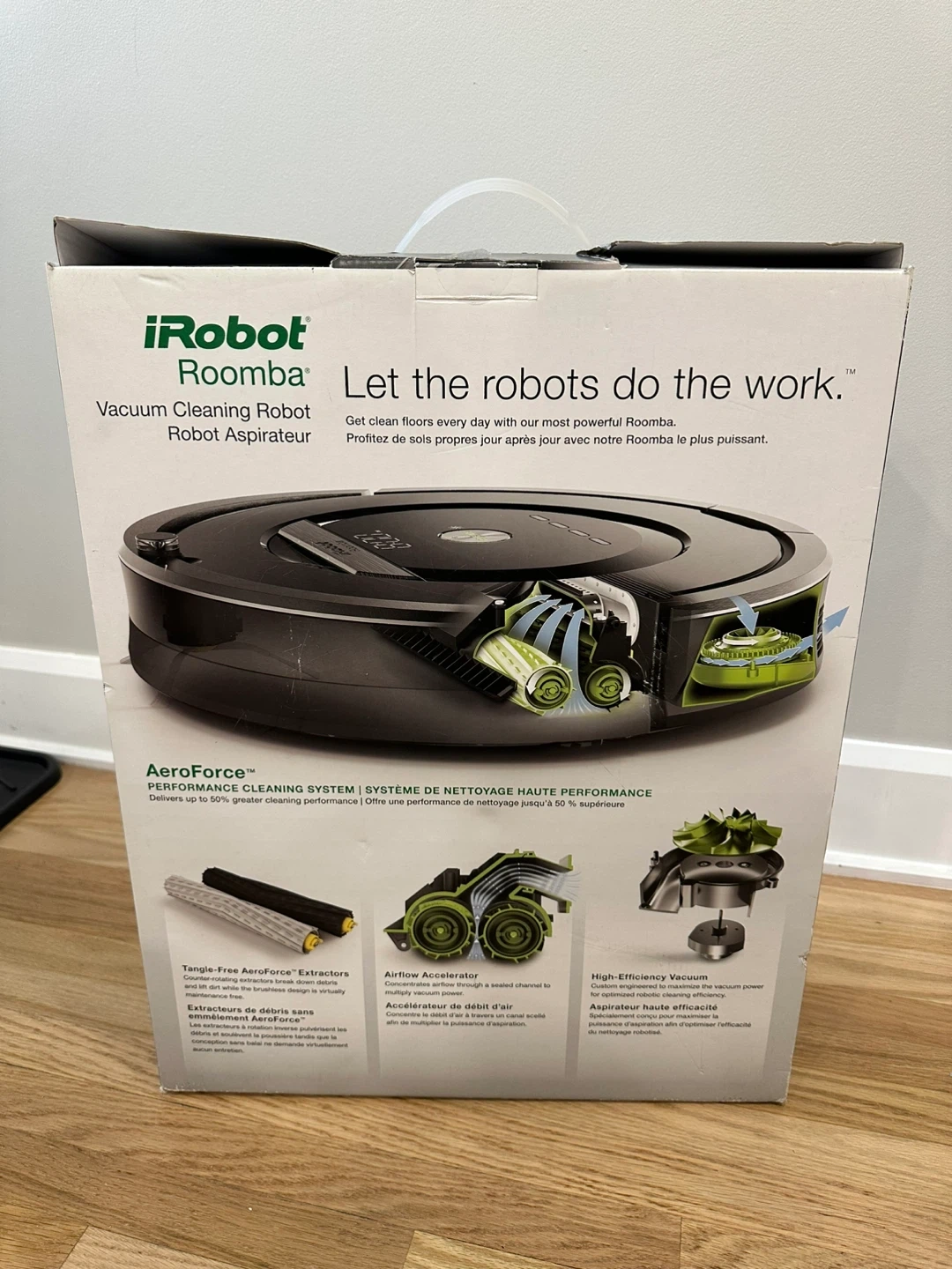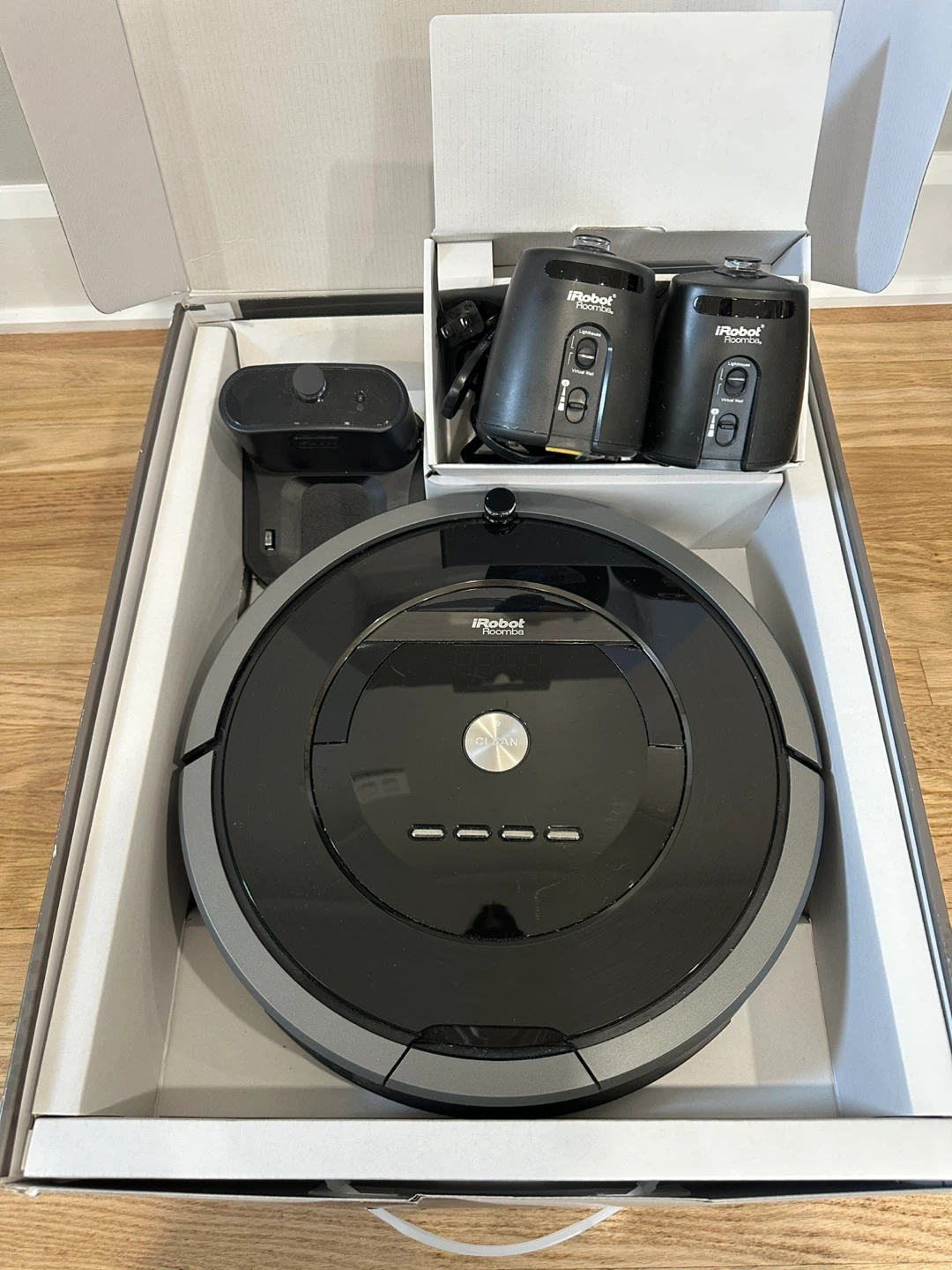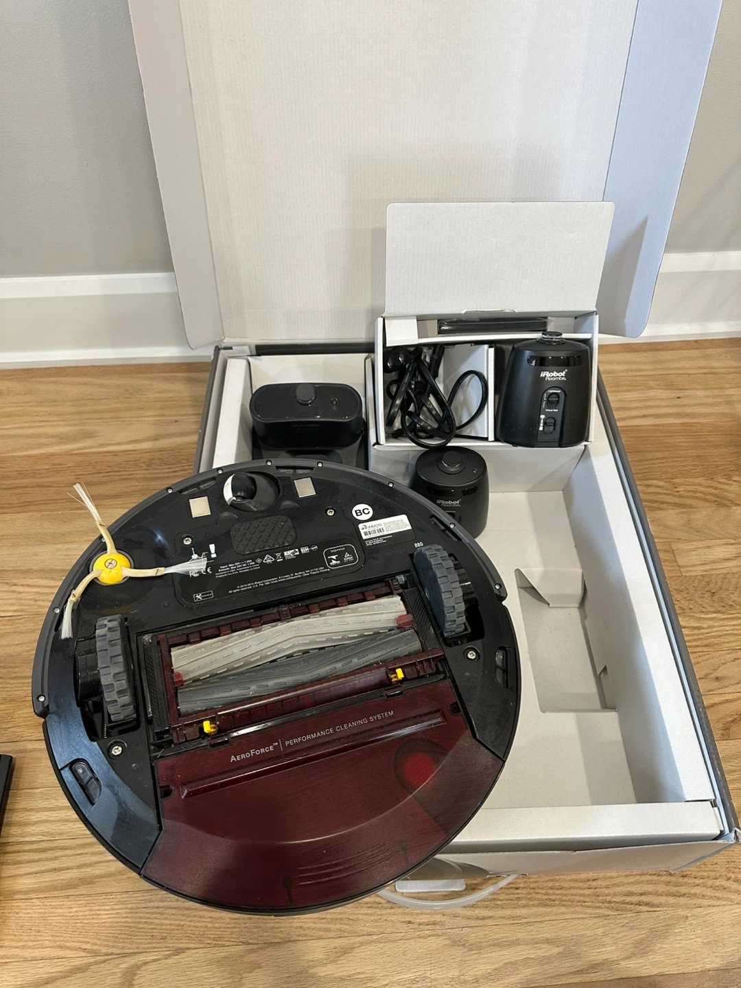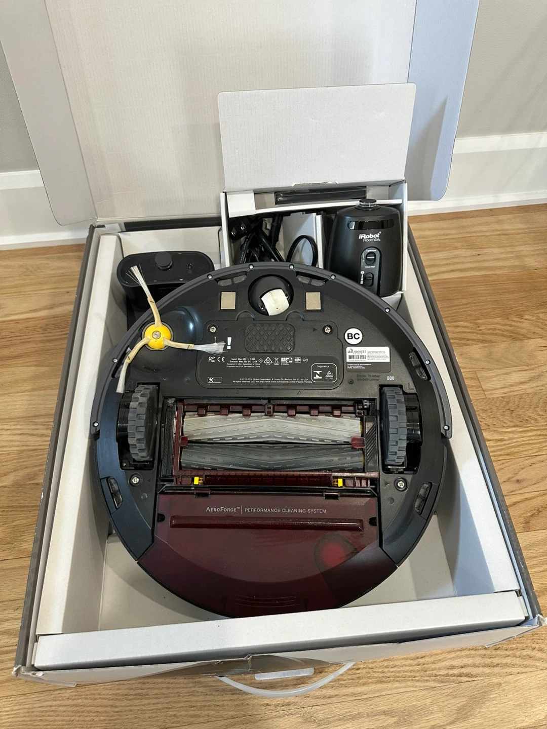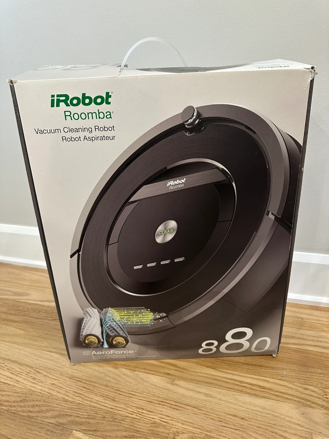 Selling an iRobot Roomba 880 vacuum cleaning robot. It comes with the box and all the original components. This Roomba uses AeroForce Performance Cleaning System. It's in great condition and ready to keep your floors clean!