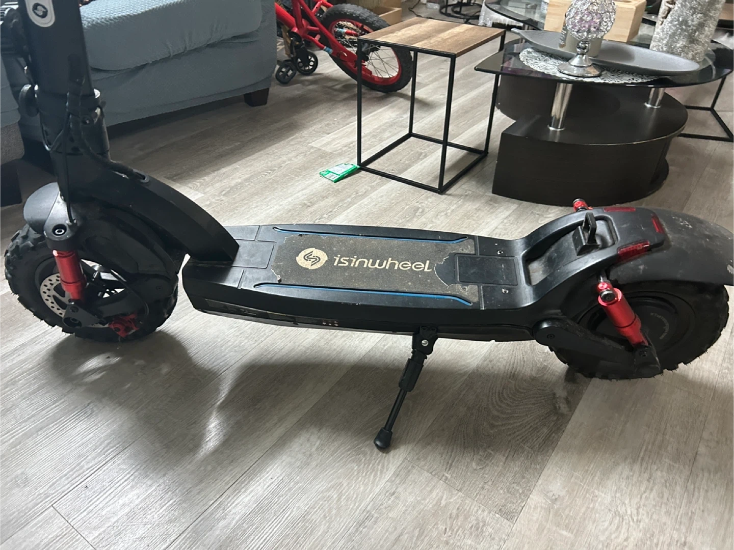 Selling an Isinwheel GT2 electric scooter. It's in good condition and ready for some fun rides around town. The scooter has some signs of use, but overall it's still a great ride! Bought for 1200 brand new 45kmh (28mph) 45km range 4-5 hours charge Bright lights Turn signals Horn Modes Eco std turbo