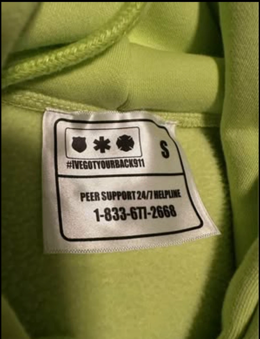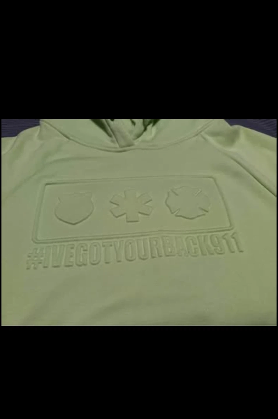 Selling a #IVEGOTYOURBACK911 hoodie in a vibrant green colour! It's a size small and features a unique design. Perfect for anyone looking for a comfortable and stylish hoodie! Fits more like a medium