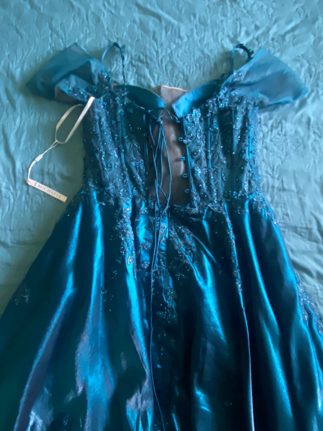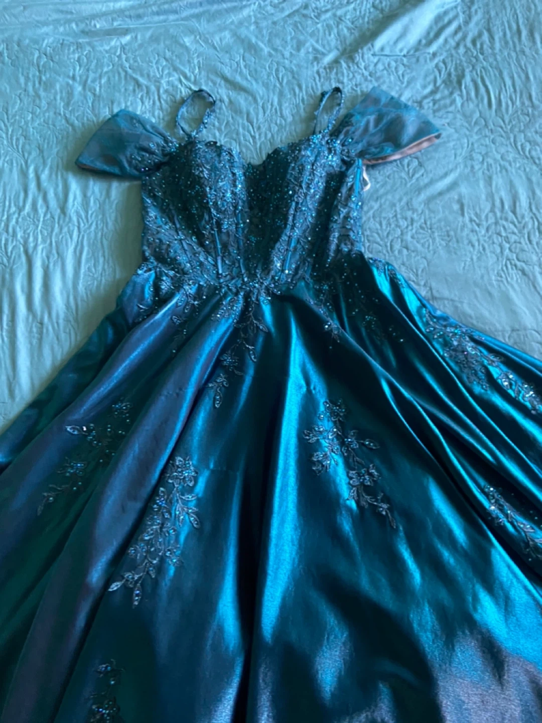 Beautiful teal formal dress by J. Michelle. It's in great condition and perfect for a special occasion! Comes with princess sleeves that can detach! Bought originally for 900$