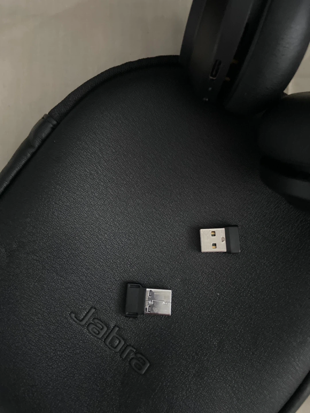 Selling a pair of Jabra headphones in black. They come with a carrying case and two USB dongles. Great for work or listening to music on the go!model 65