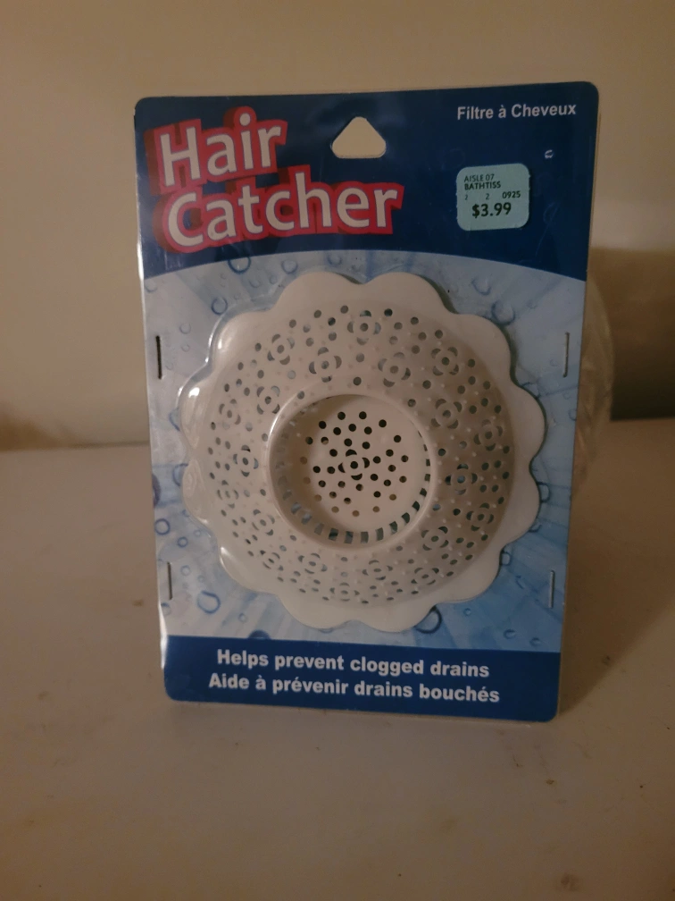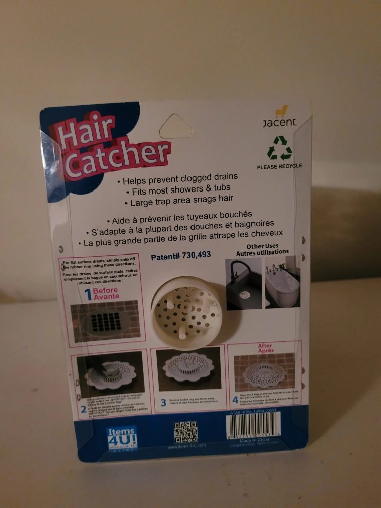 Keep your drains clear with this Jacent Hair Catcher! It's brand new in the package and ready to use. It helps prevent clogged drains and fits most showers and tubs. The large trap area snags hair effectively. Originally priced at $3.99.