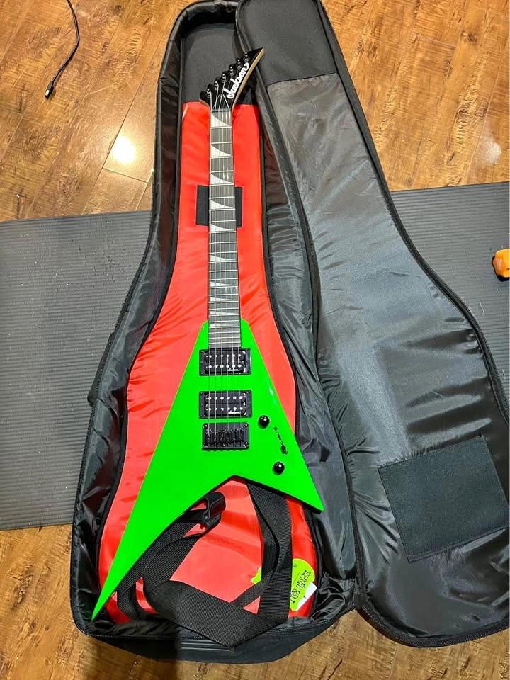 Jackson Junior green V guitar with strap and gig bag. It's like new. Barely used.