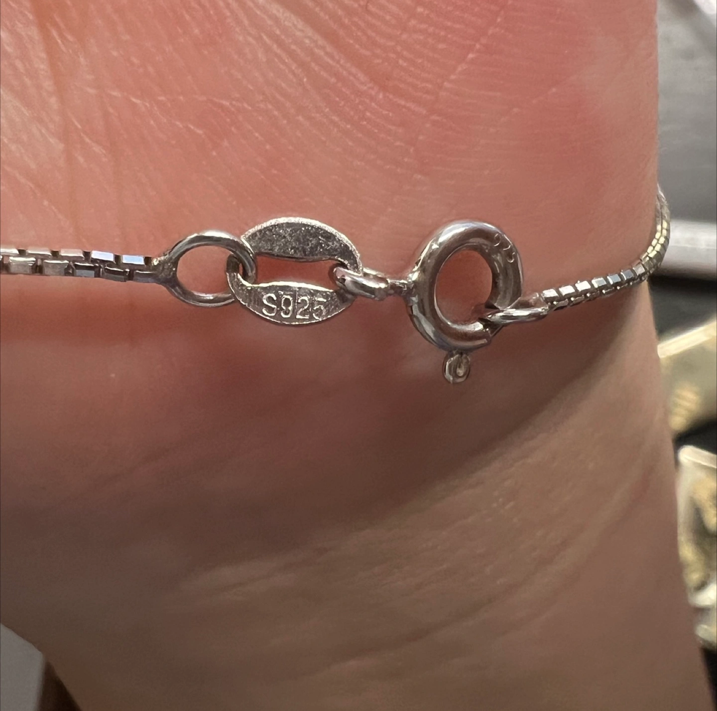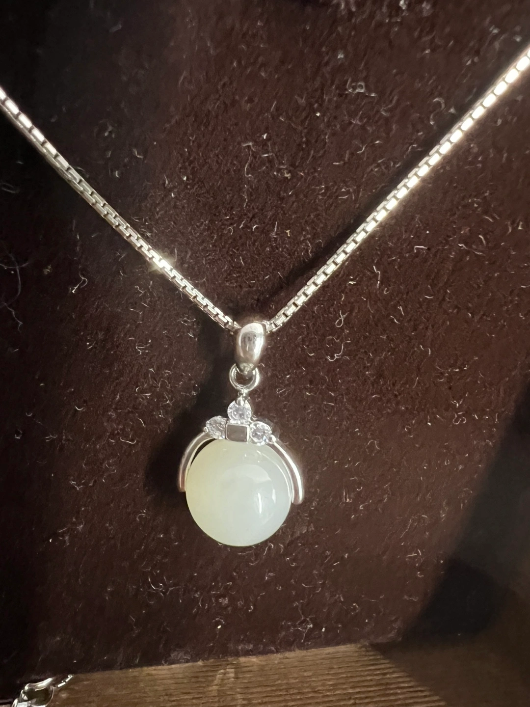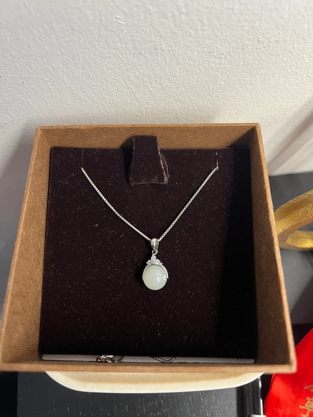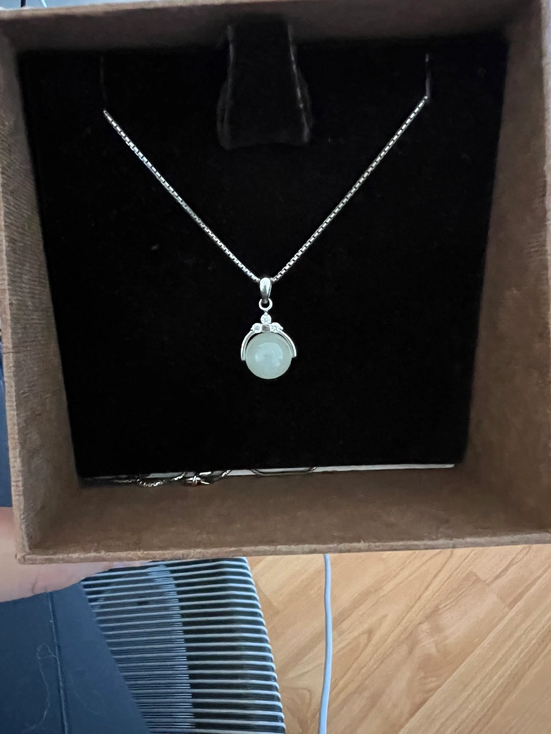 This is a lovely jade pendant necklace with an S925 silver chain. It comes in a box and would make a wonderful gift for someone special box not included