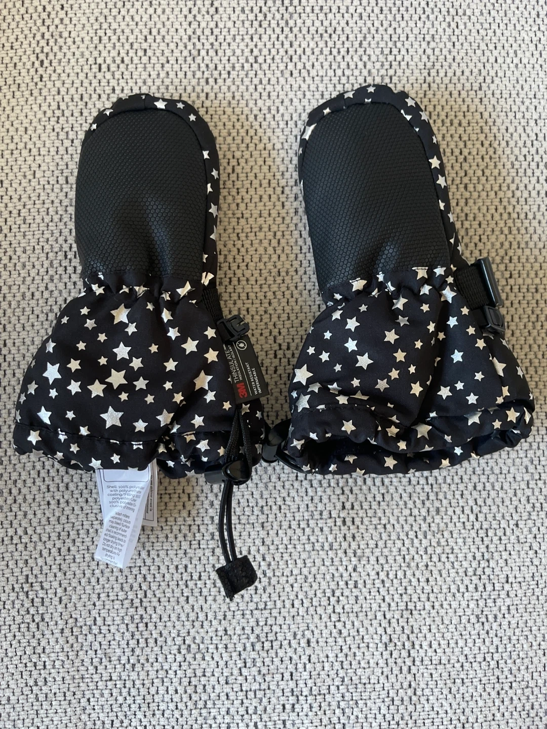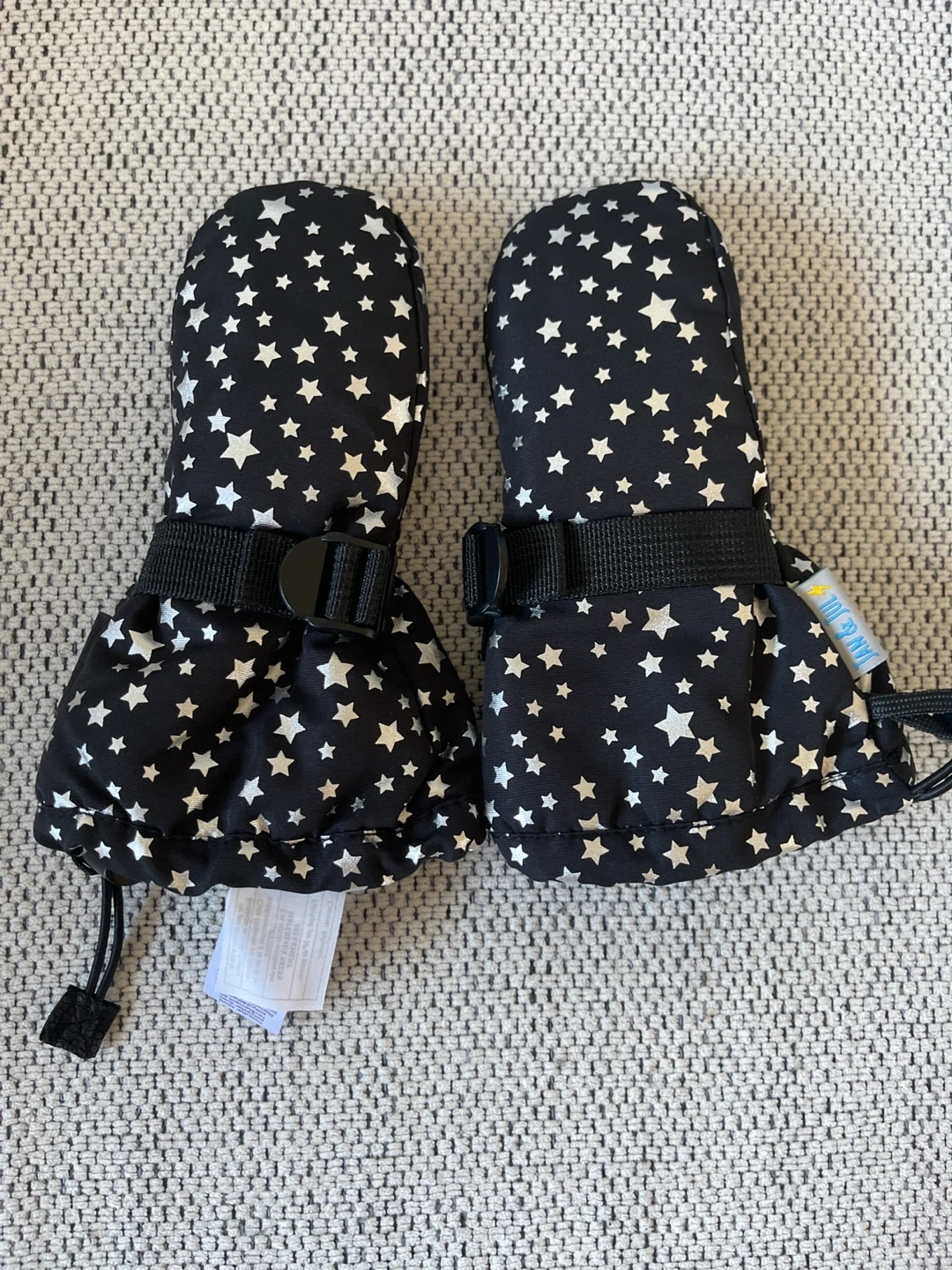 Keep your little one warm with these Jan & Jul mittens! They're a stylish black with a cute star pattern. Size XS, perfect for tiny hands. The shell is 100% polyester with a polyurethane coating, and the filling/lining is 100% polyester too