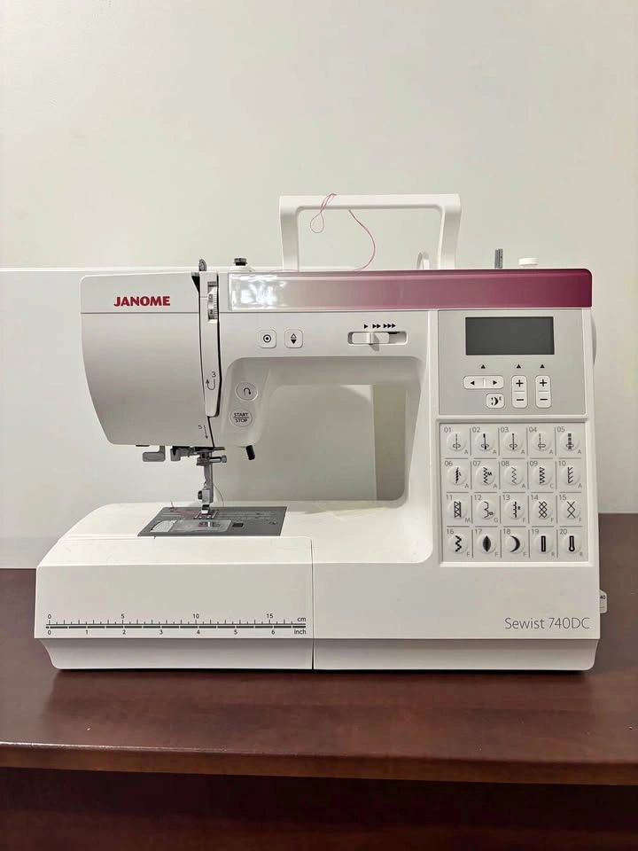 * Used only once or twice * Bought last year * PICKUP Sherwood Park FEATURES: * The Janome Sewist 740DC is a really easy to use, fully computerized sewing machine that is packed with so many powerful features. This machine has 40 stitches, for a variety of applications. * The Sewist 740DC also offers a choice of 3 styles of one-step buttonholes. Special features include pattern elongation of up to 5 times normal length; easy set bobbin system; auto bobbin winder system no need to unthread the machine; built-in needle threader; needle up/down button; and an auto-lock stitch feature for precision locking off of stitches and patterns. * The start/stop button allows you to sew without a foot control. Machine Cover Included * The Sewist 740DC also offers a choice of 3 styles of one-step buttonholes * Unless marked pending or sold, it is still available. I respectfully won’t be entertaining “is this available?” Questions Please check out my other listings.