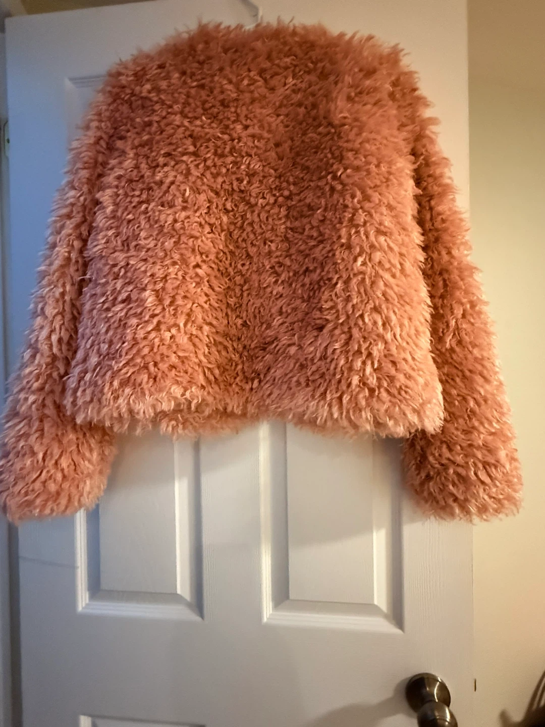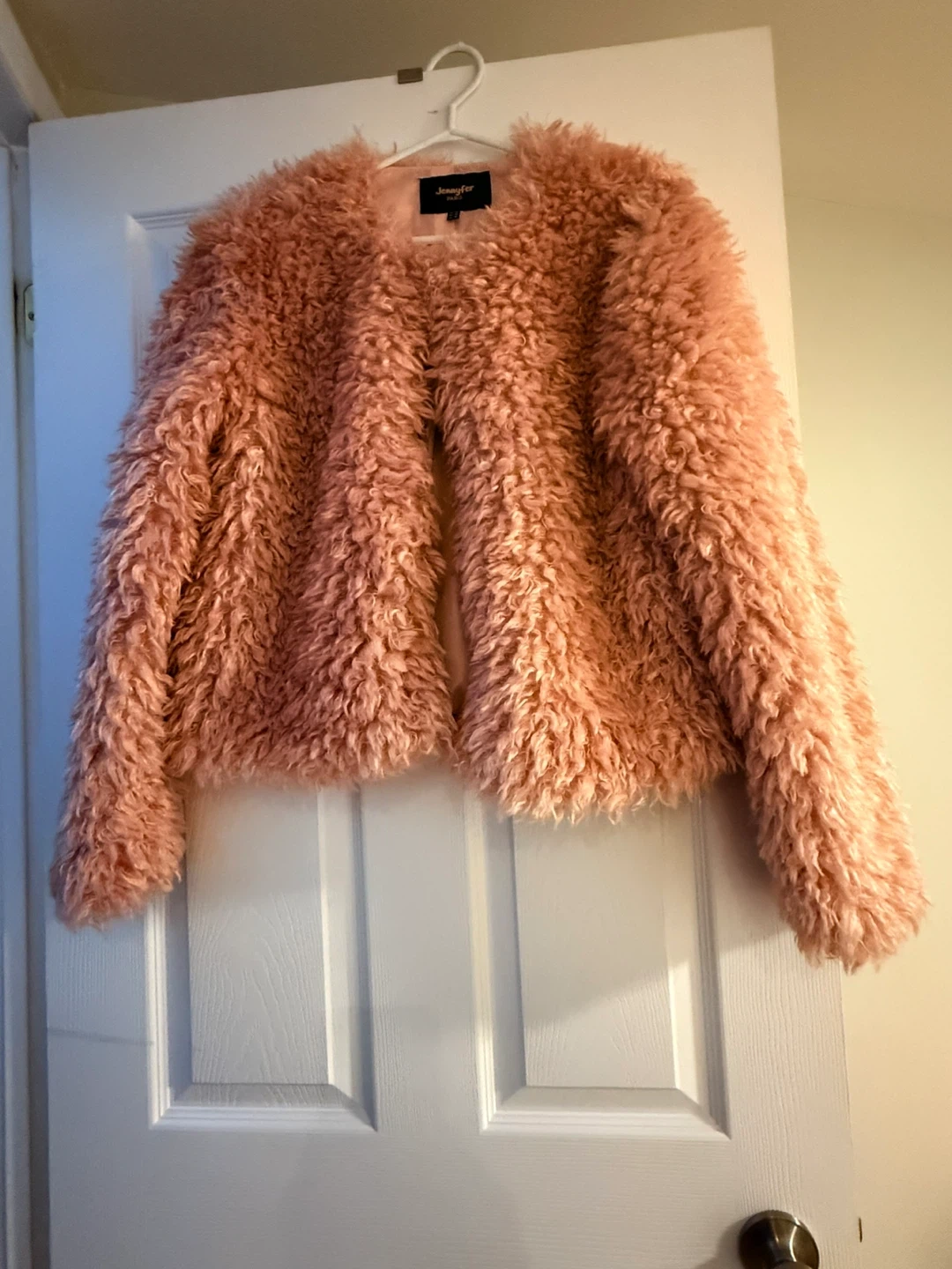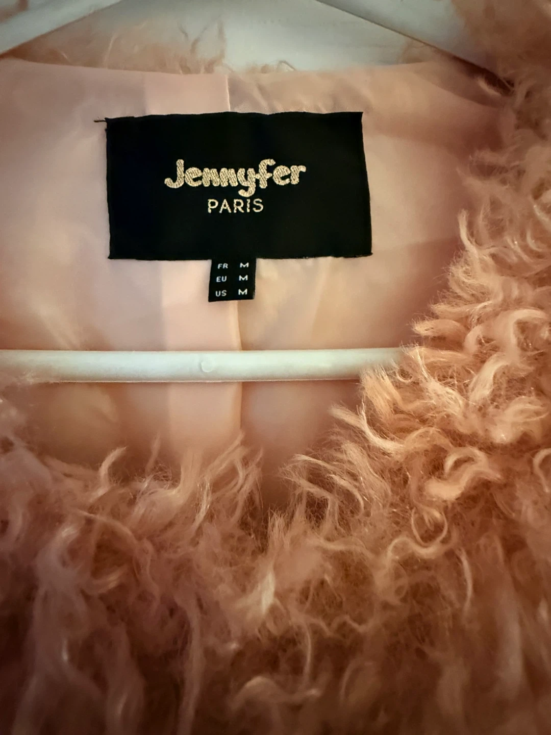 Cozy up in this stylish Jennyfer Paris faux fur jacket from Paris, France! It's a beautiful pink colour and a size medium. Perfect for adding a touch of warmth and style to any outfit. It's in great condition and ready for a new home!