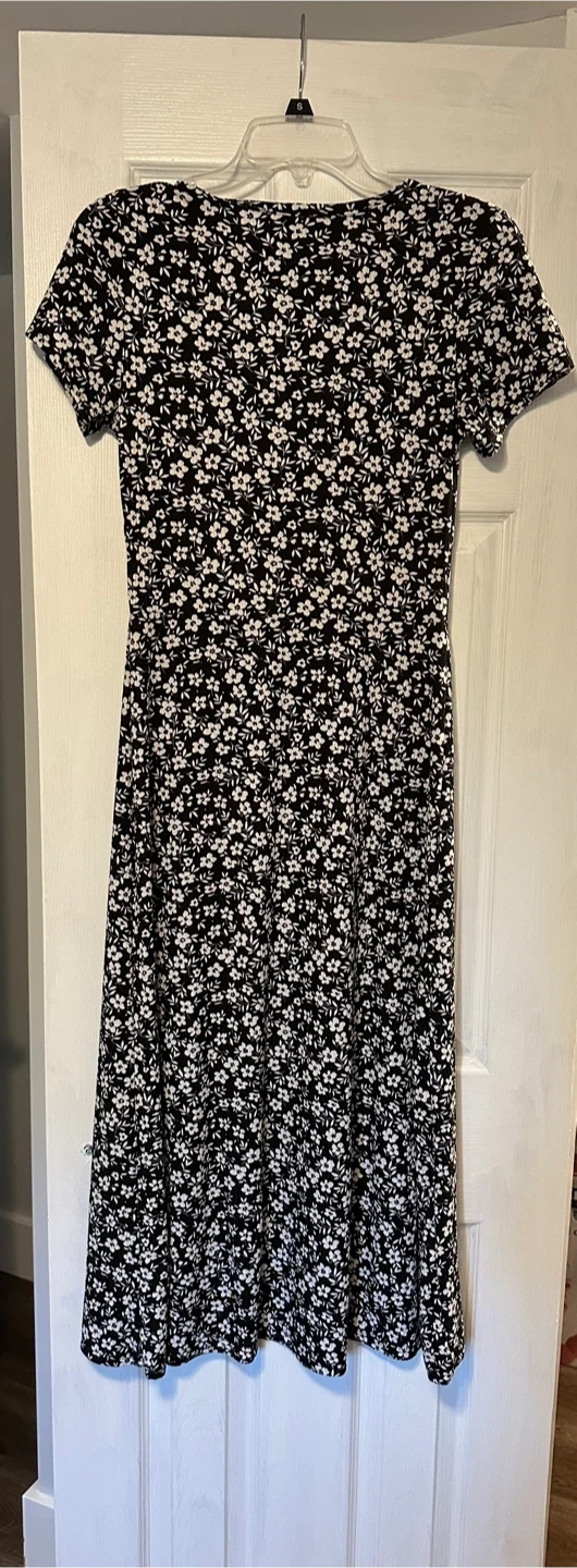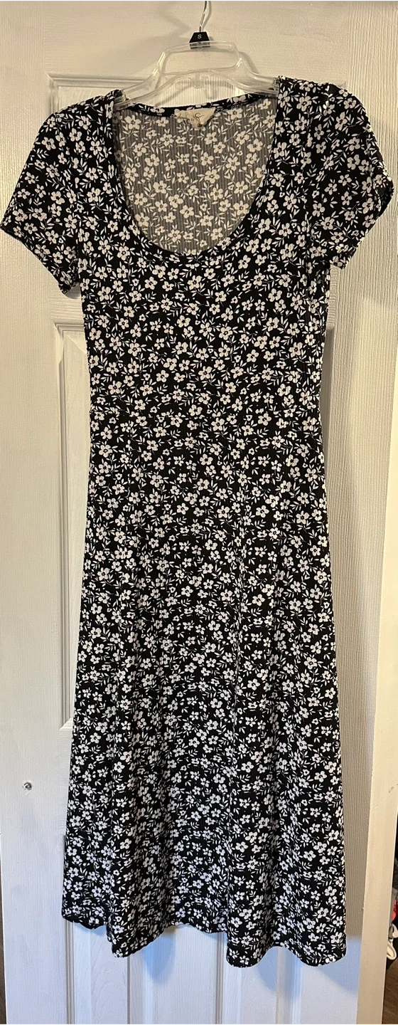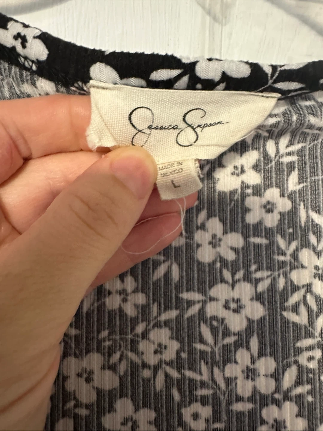 Selling a cute Jessica Simpson midi dress with a black and white floral pattern. It's a size large and in great condition!