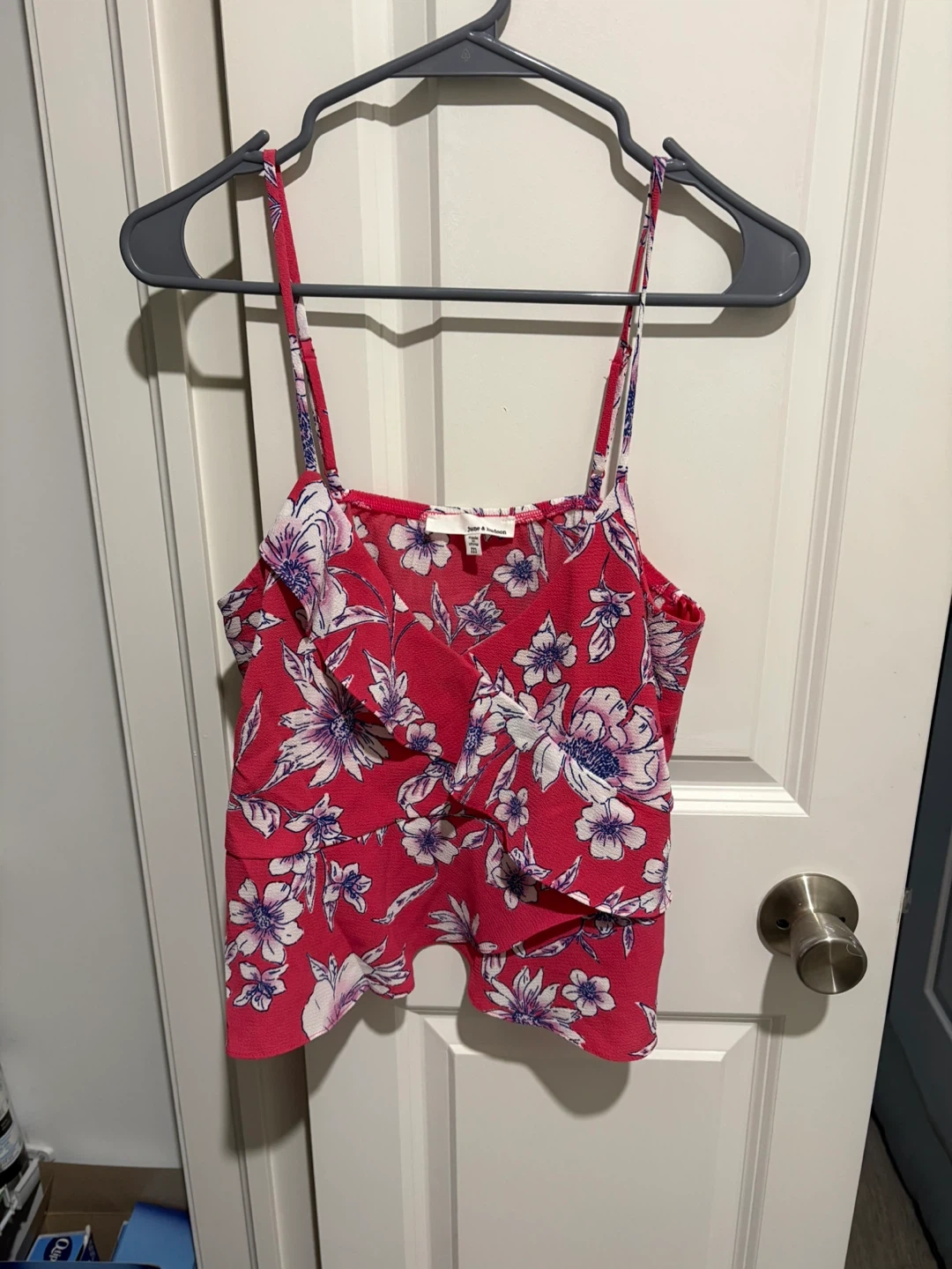 Selling a cute Jete & Isobelle floral cami in size medium! It features a vibrant pink colour with a lovely floral pattern. Perfect for adding a pop of colour to your wardrobe