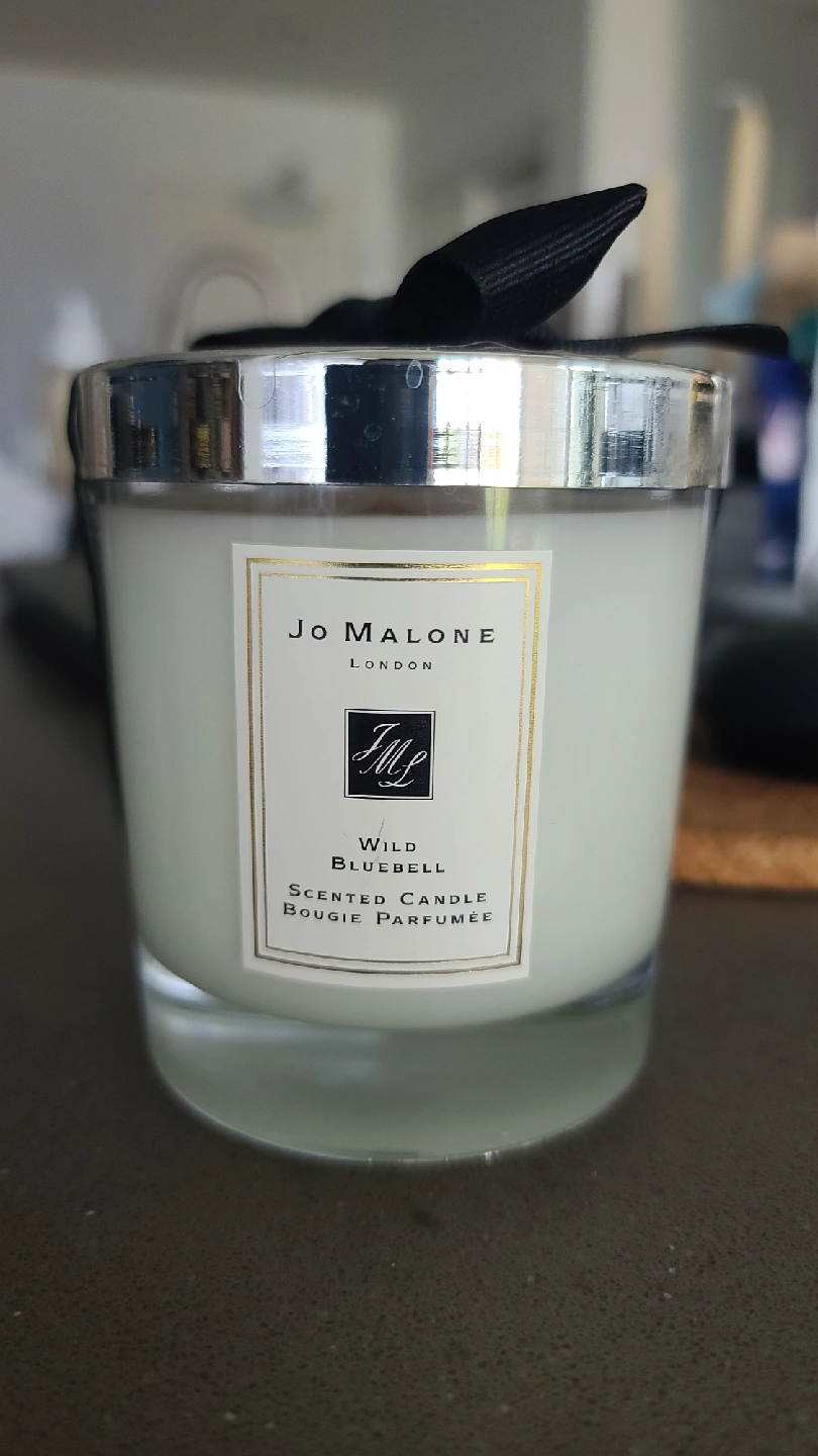 Selling a Jo Malone Wild Bluebell scented candle. The height is 2.5 inches. It's a lovely candle! New with ribbon, no box.