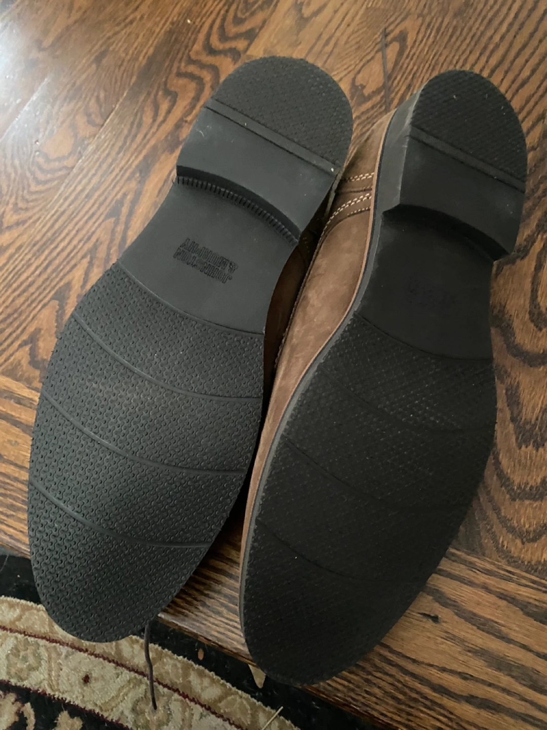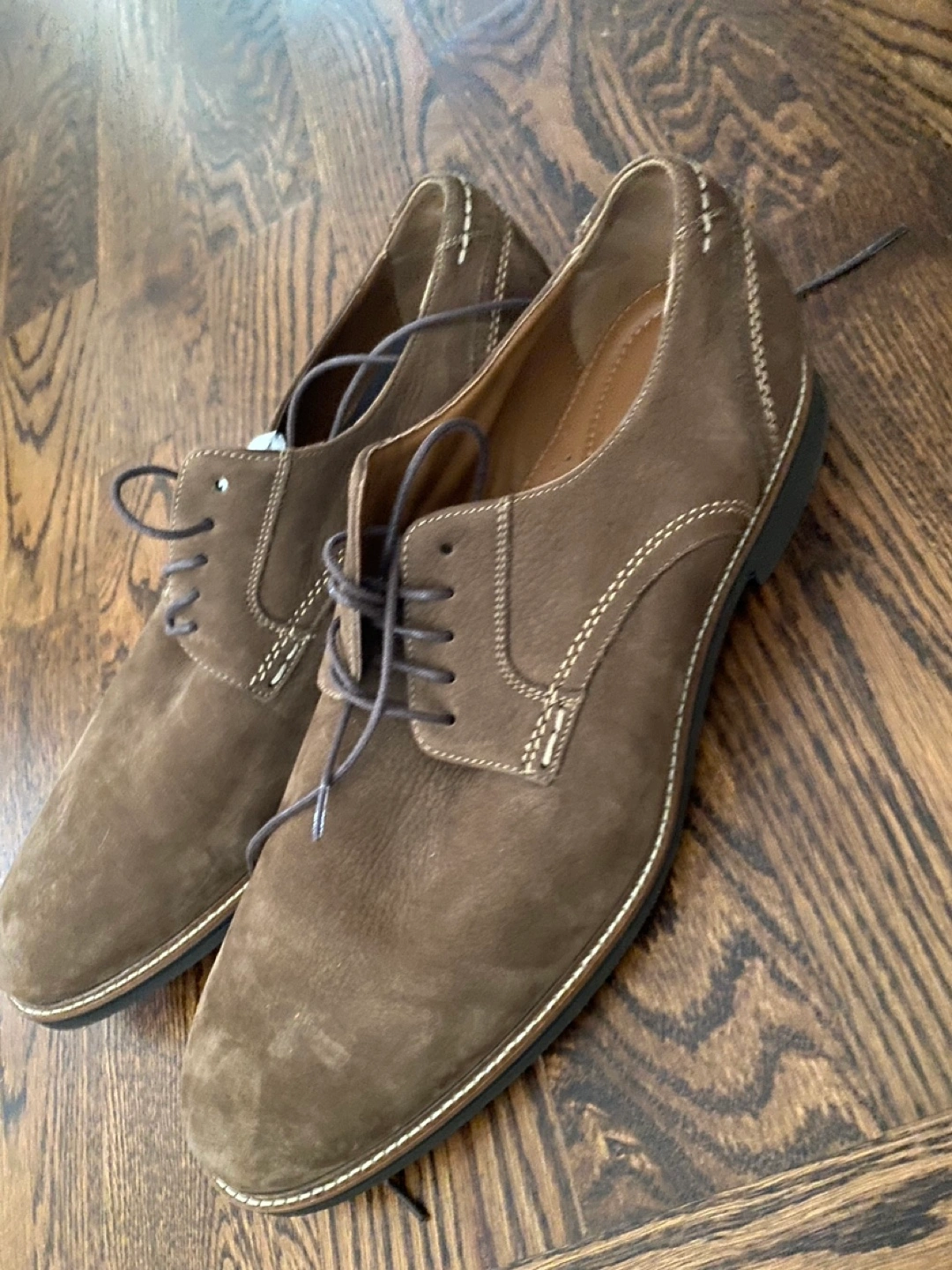 Men’s Brown suede lace up shoes. By Johnson and Murphy. New. Excellent quality suede upper with leader interior. Winners sold these for $150. Retail over $200 Sadly these were too big and passed the return timeline.