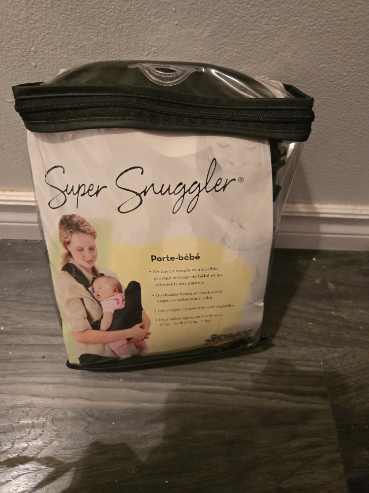 Selling a Jolly Jumper Super Snuggler Porte-bébé! It's suitable for babies aged 0 to 18 months (7 lbs - 24 lbs) (3 kg - 11 kg).