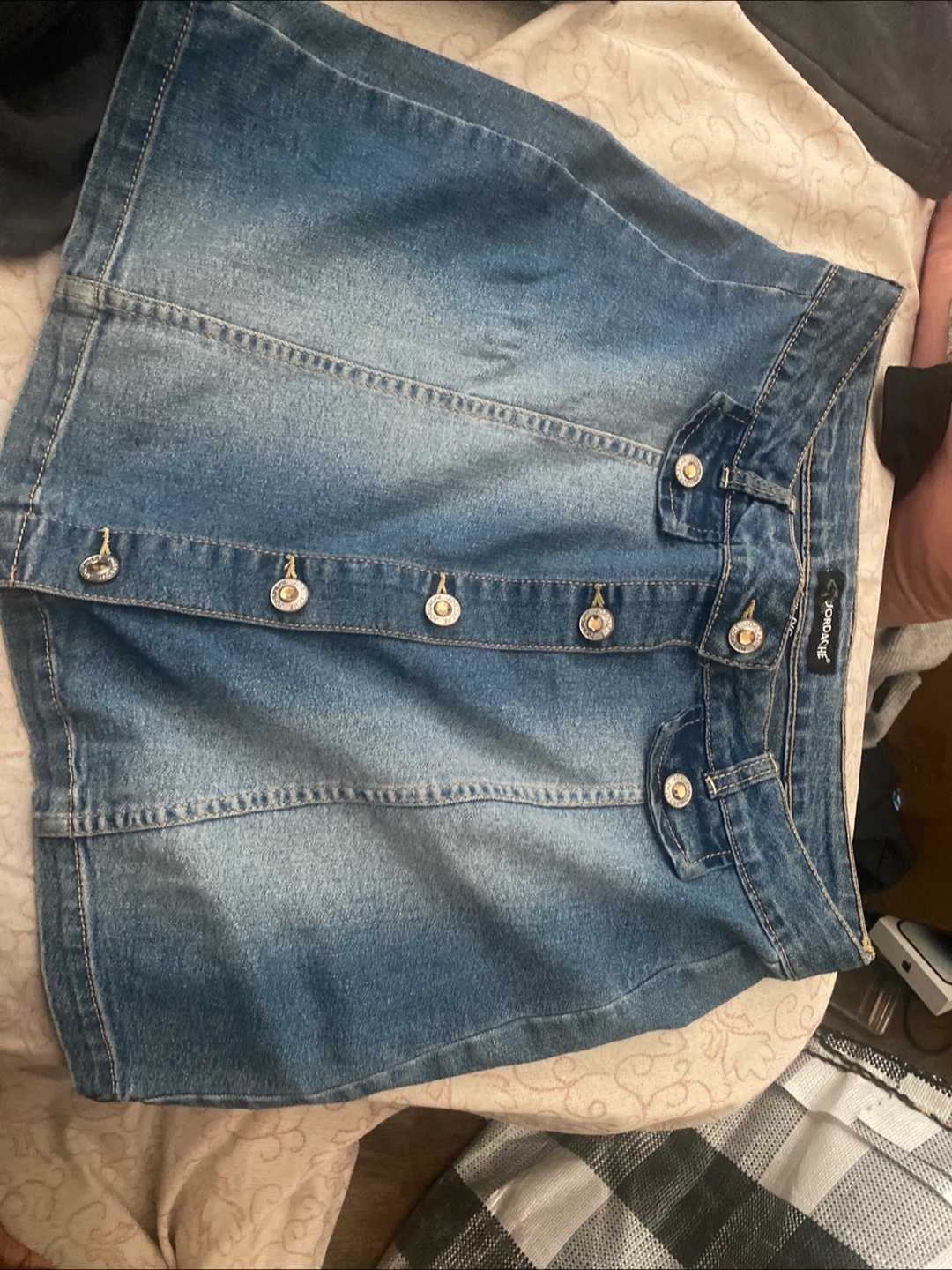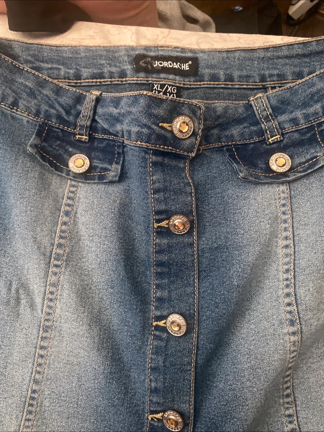 Selling a Jordache denim skirt in excellent condition! It's a size XL and features a button-down front. The material is denim, and it's a stylish addition to any wardrobe