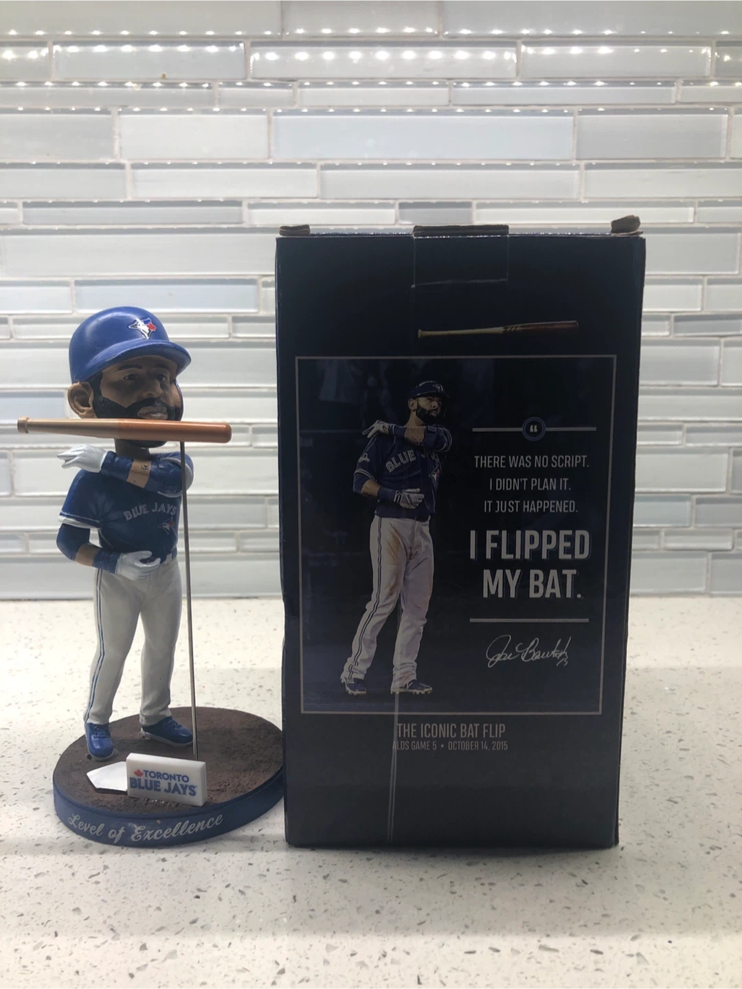 Selling a Jose Bautista bobblehead figure! It's in great condition and comes with the original box, which commemorates "The Iconic Bat Flip" from ALDS Game 5 on October 14, 2015
