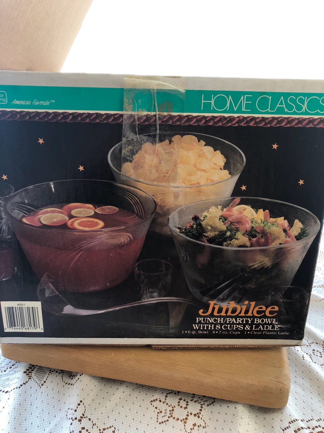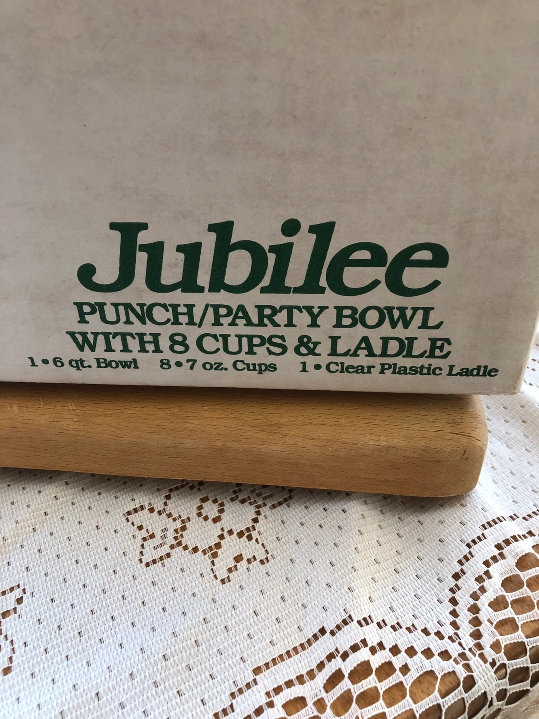 Selling a Jubilee punch/party bowl set! It includes 1 6 qt bowl, 8 7 oz cups, and 1 clear plastic ladle. Perfect for your next gathering or celebration