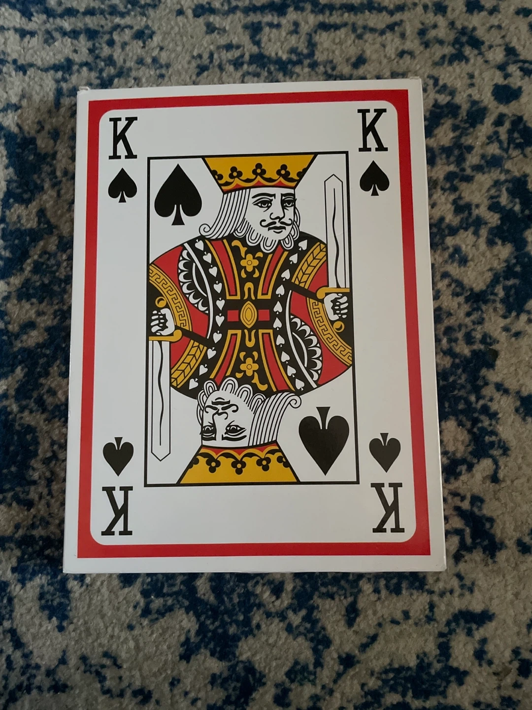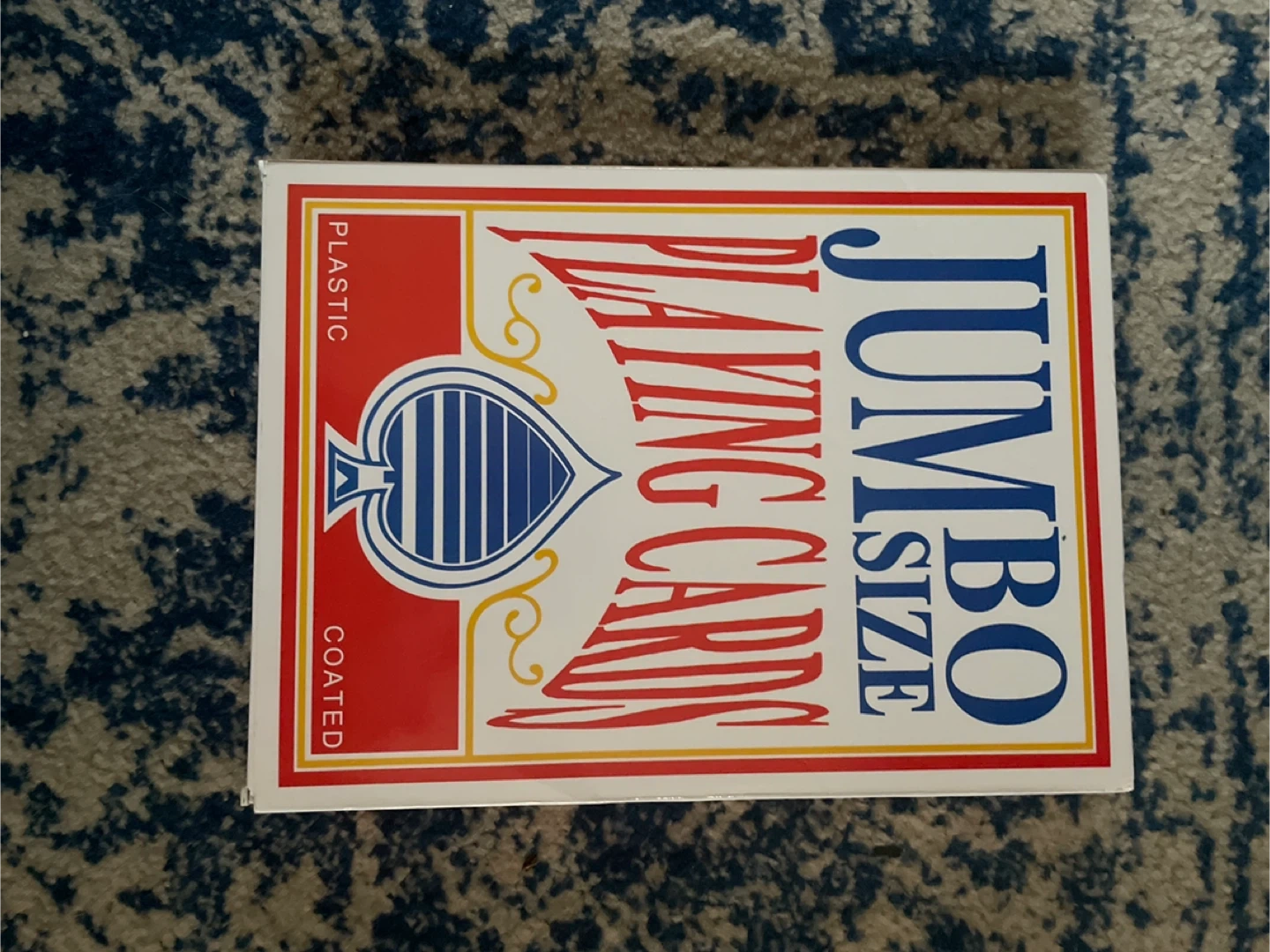 Selling a deck of jumbo-sized playing cards! Perfect for card games with the family or a fun gift for someone who enjoys playing cards. The cards are plastic coated.