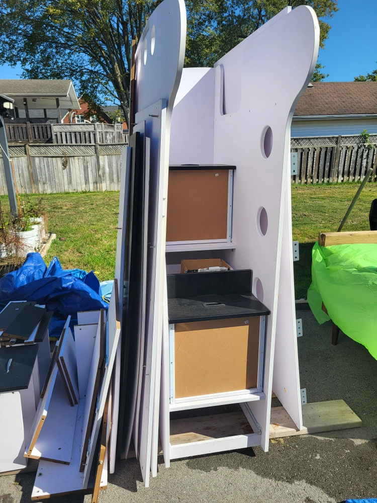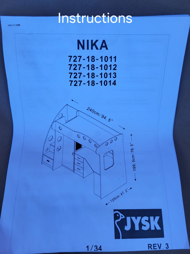 Selling a JYSK NIKA loft bed frame. It's partially disassembled and ready to go. The instruction manual is also included to help you set it up. Dimensions are 240cm/94.5" x 199.5cm/78.5" x 120cm/47.2" Will need to be picked up with big vehicle and securely strapped down Some slight damage on backside aestheticly.