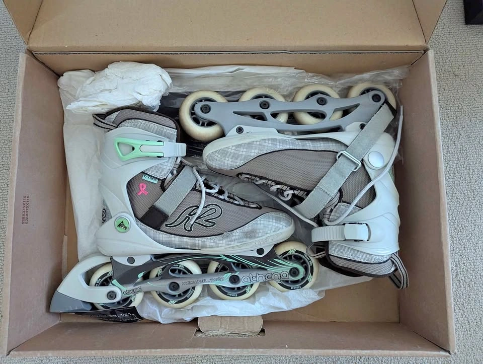 Women's pink ribbon edition K2 Athena roller blades. Size US 8