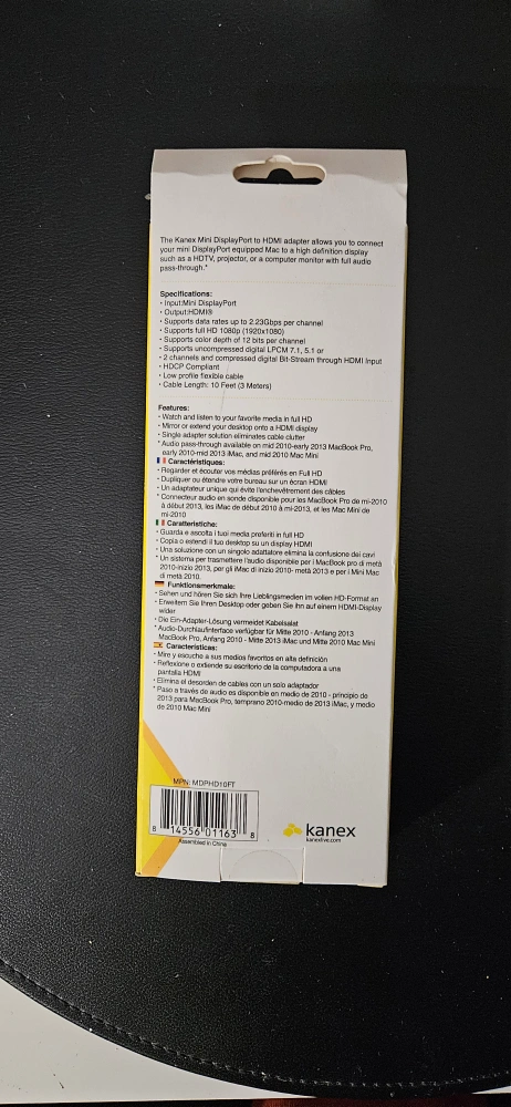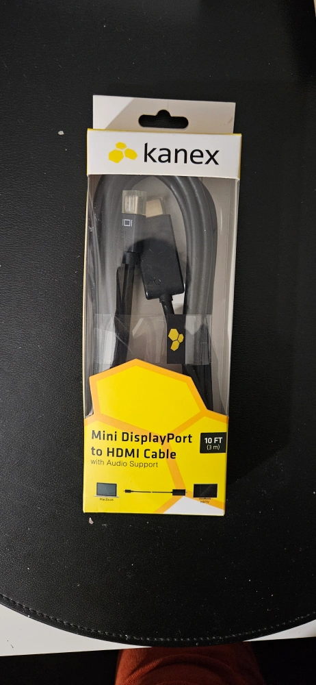 Selling a Kanex Mini DisplayPort to HDMI cable. It's 10 ft (3 m) long and supports audio. It allows you to connect your MacBook to a HDTV, projector, or computer monitor with full audio support. The cable supports full HD 1080p (1920x1080).