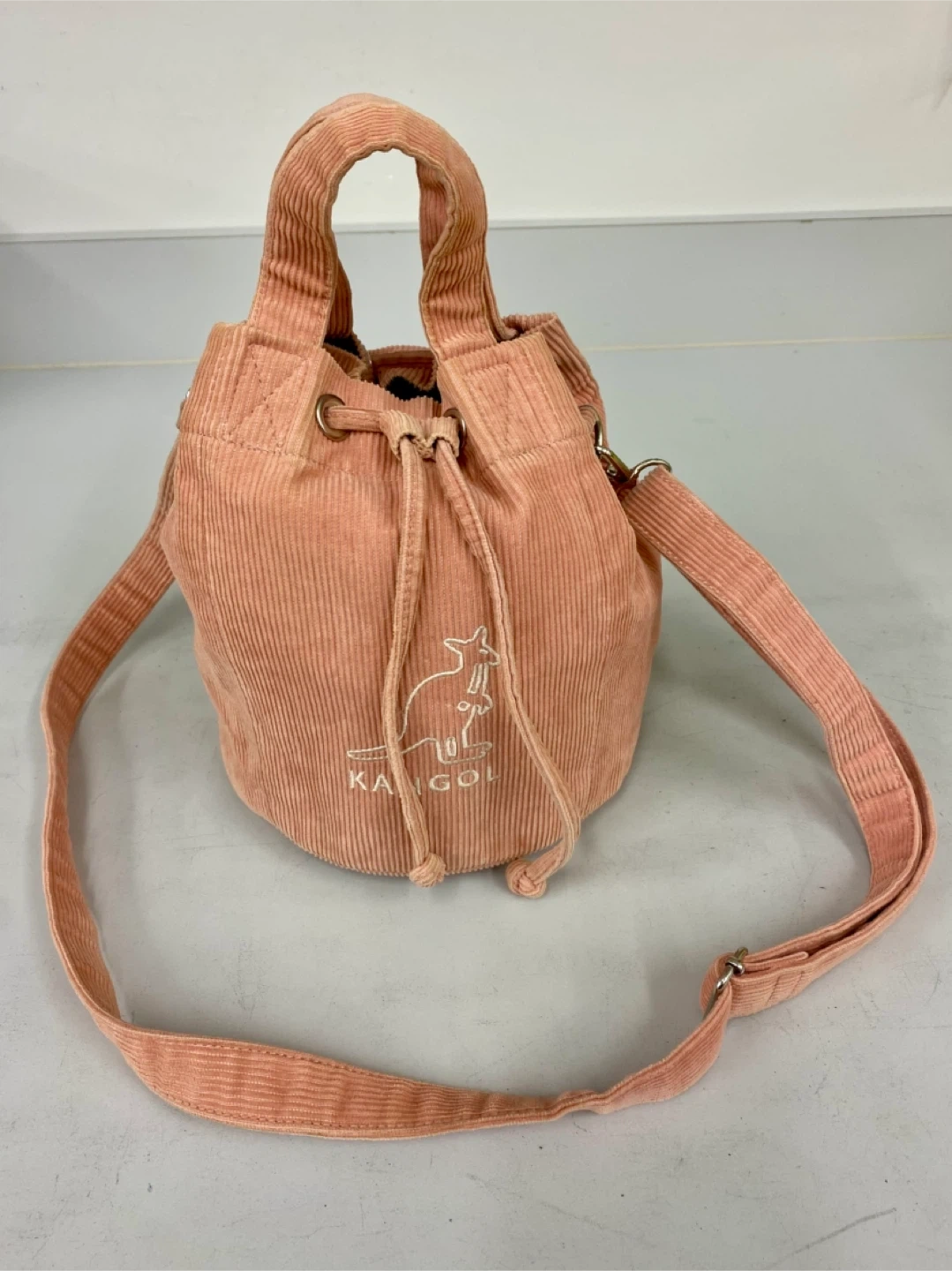 KANGOL Drawstring Corduroy Pouch / Bucket Bag - Peach