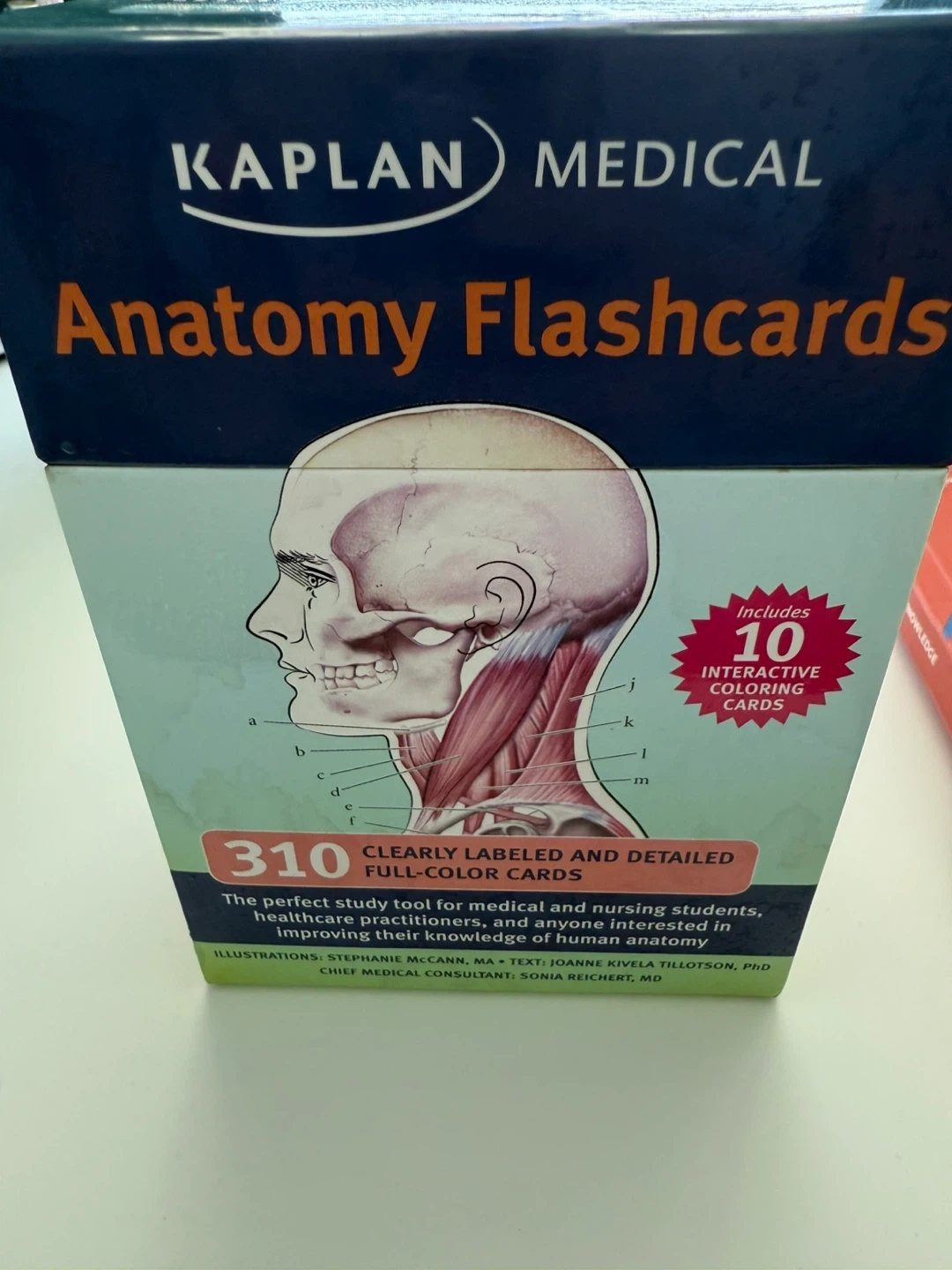 FOR NURSING/ PHYSIOTHERAPY/ PHYSIOTHERAPY ASSISTANT/MEDICAL Selling a set of Kaplan Medical Anatomy Flashcards. This set includes 310 clearly labeled and detailed full-color cards. Also includes 10 interactive coloring cards. Perfect for medical and nursing students, healthcare practitioners, and anyone interested in improving their knowledge of human anatomy