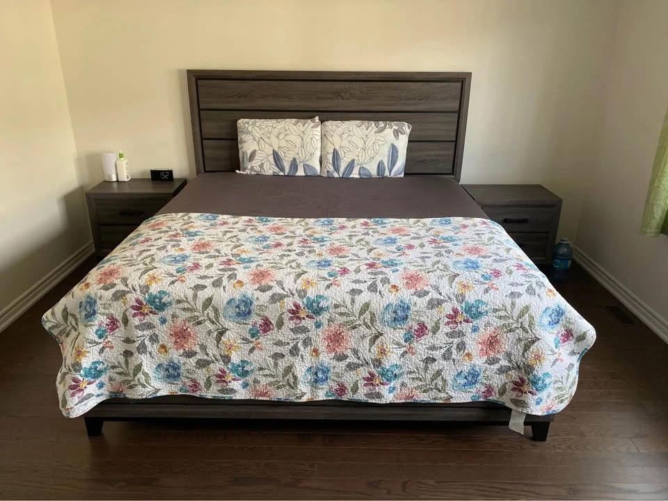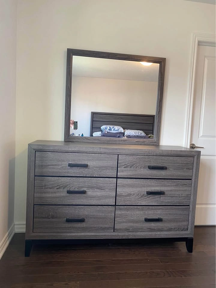 Queen Bedroom Set - Bed Frame, Dresser with Mirror