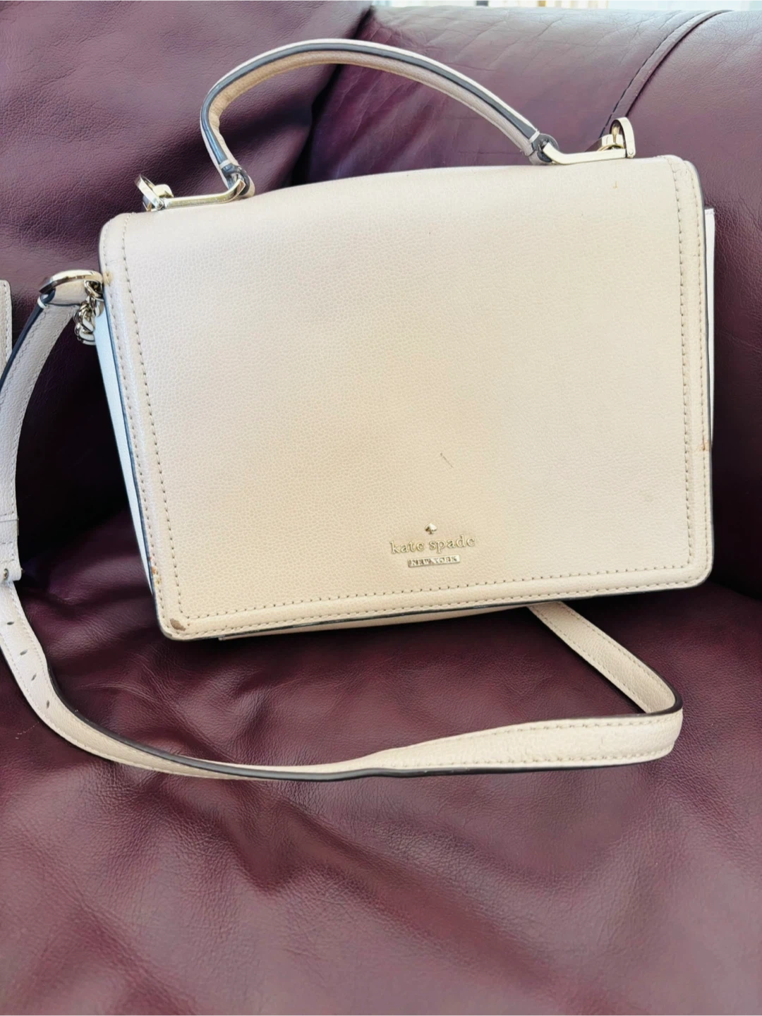 Selling a Kate Spade handbag in a lovely beige colour. It's a stylish and practical accessory for any outfit.