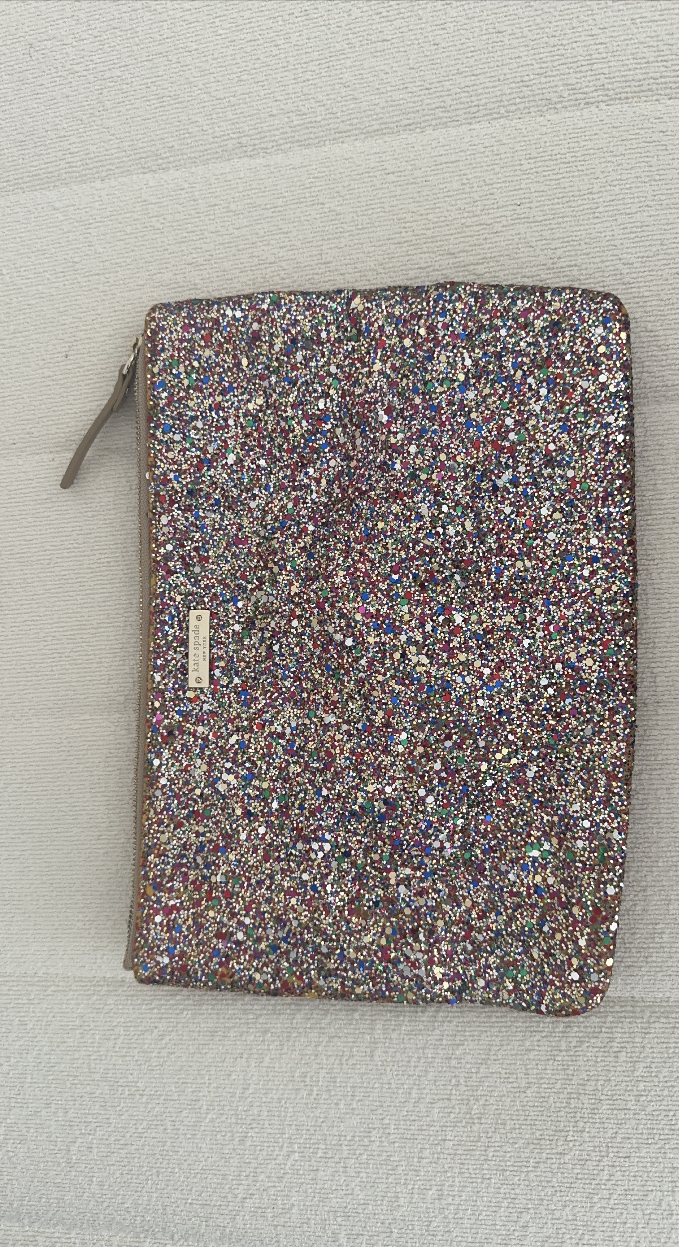 This is a Kate Spade tablet sleeve with a fun glitter design! It's perfect for adding a bit of sparkle to your everyday tech accessories. Great for protecting your tablet on the go