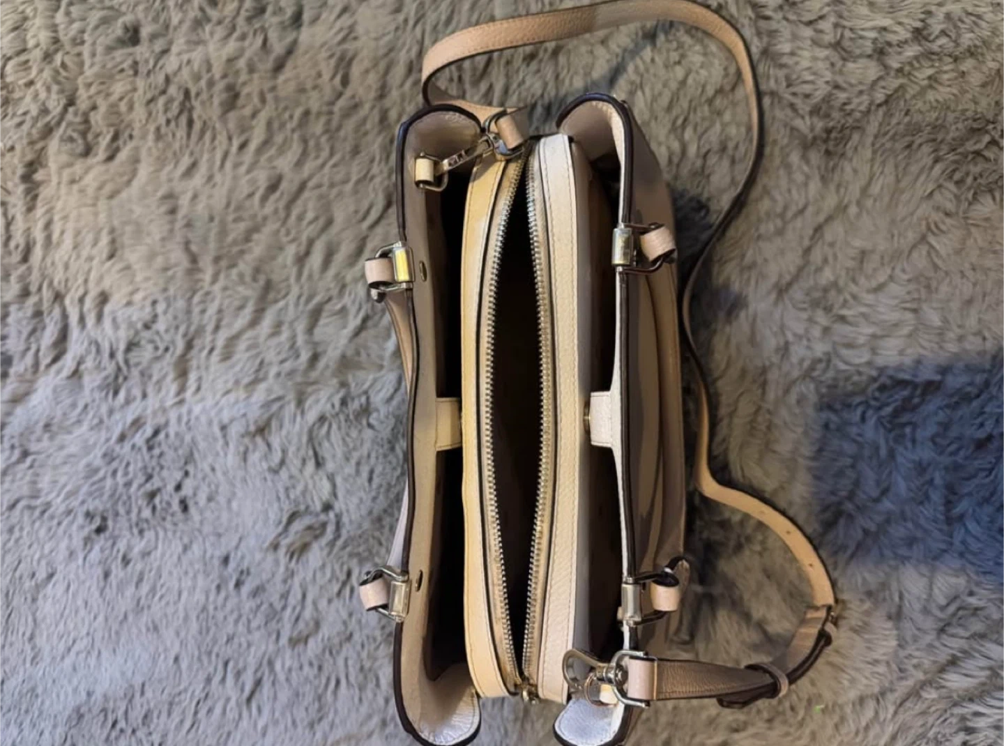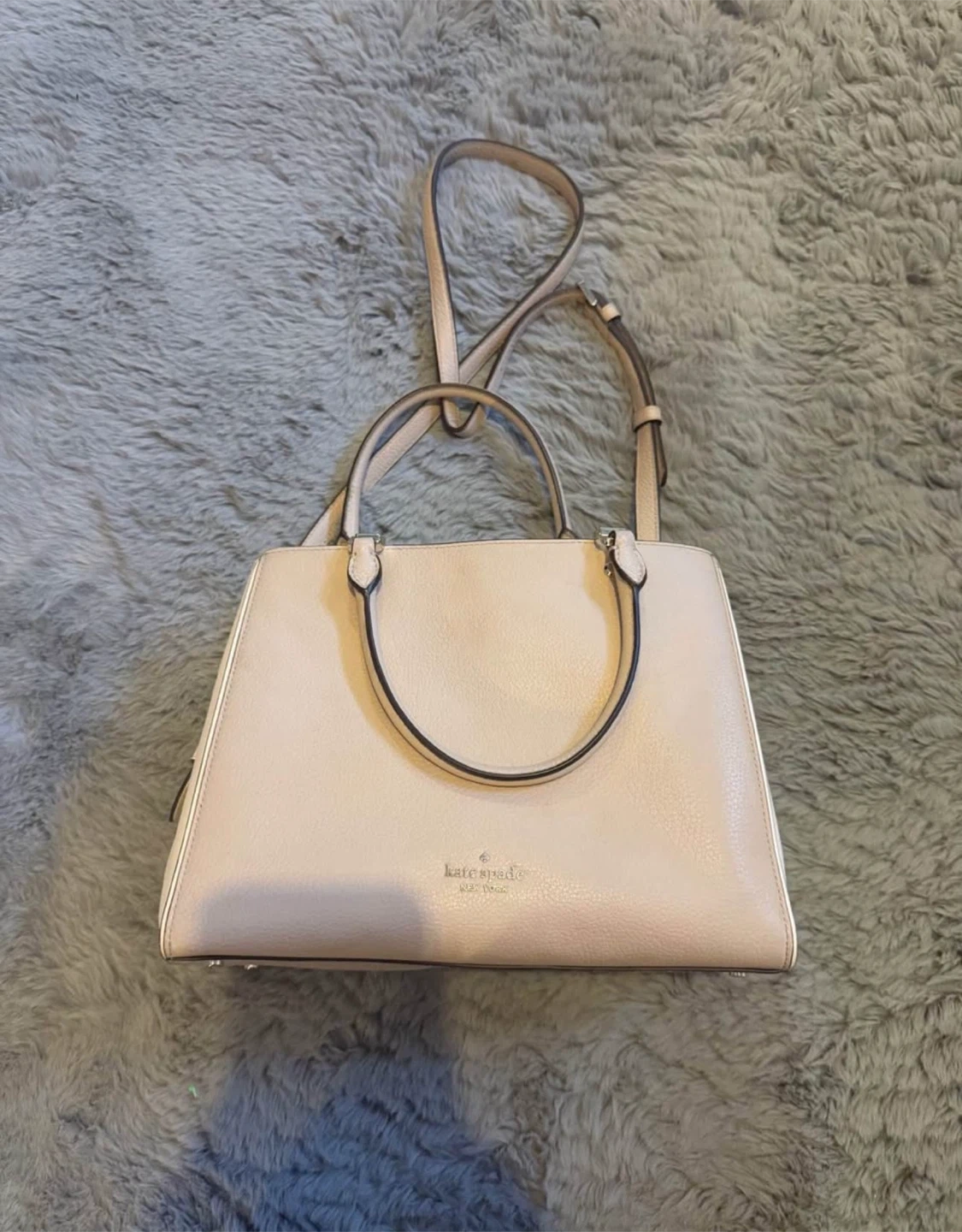 Selling a Kate Spade satchel! It's in great condition with a neutral colour that goes with everything. Perfect for everyday use or a night out. It has both handles and a shoulder strap for easy carrying!