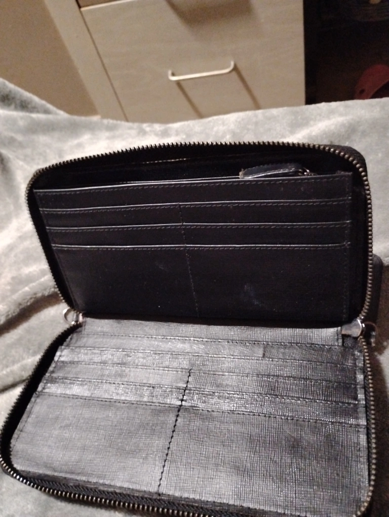 this is a really beautiful wall leather wallet the leather has a pattern in it and it's very functional it has lots of pockets and places to put everything. it is very sophisticated and feels like luxury.