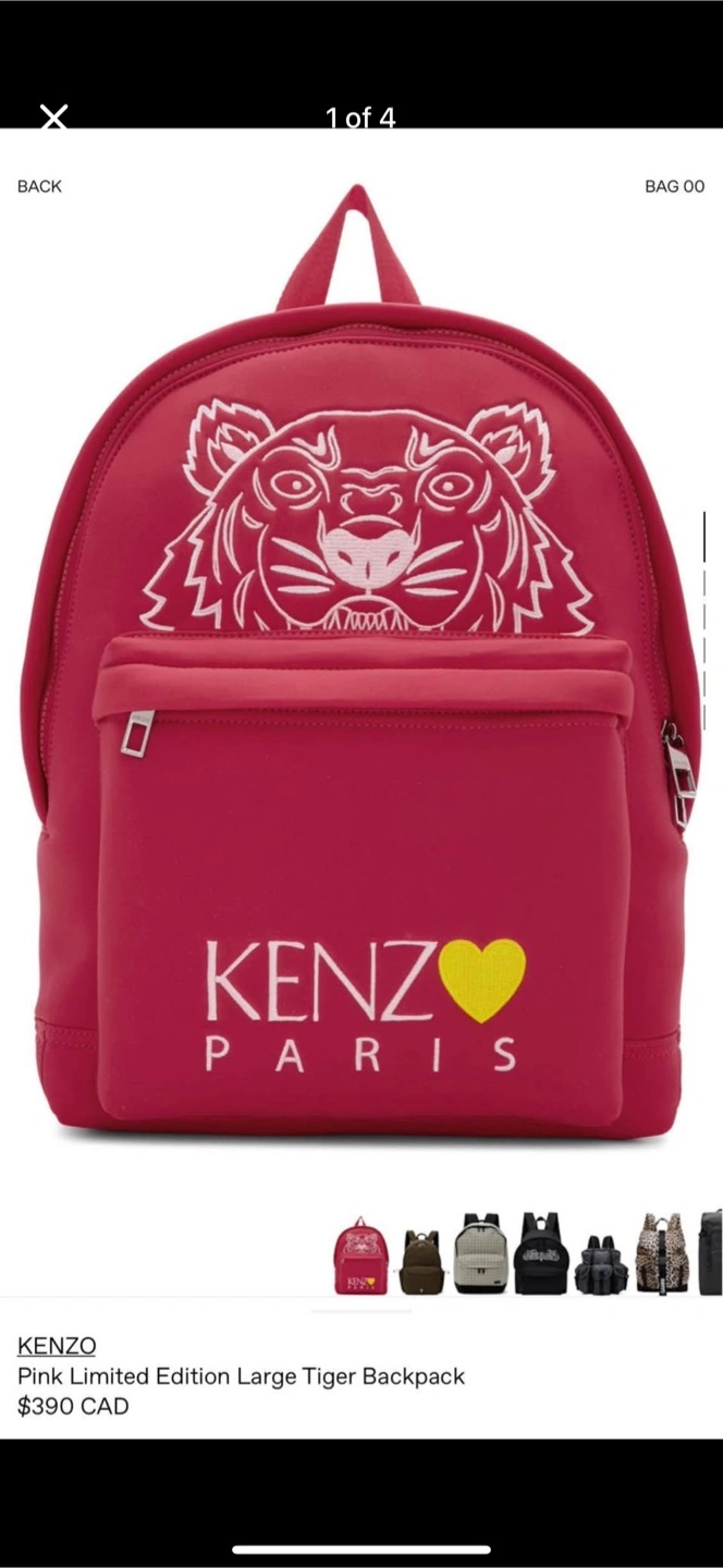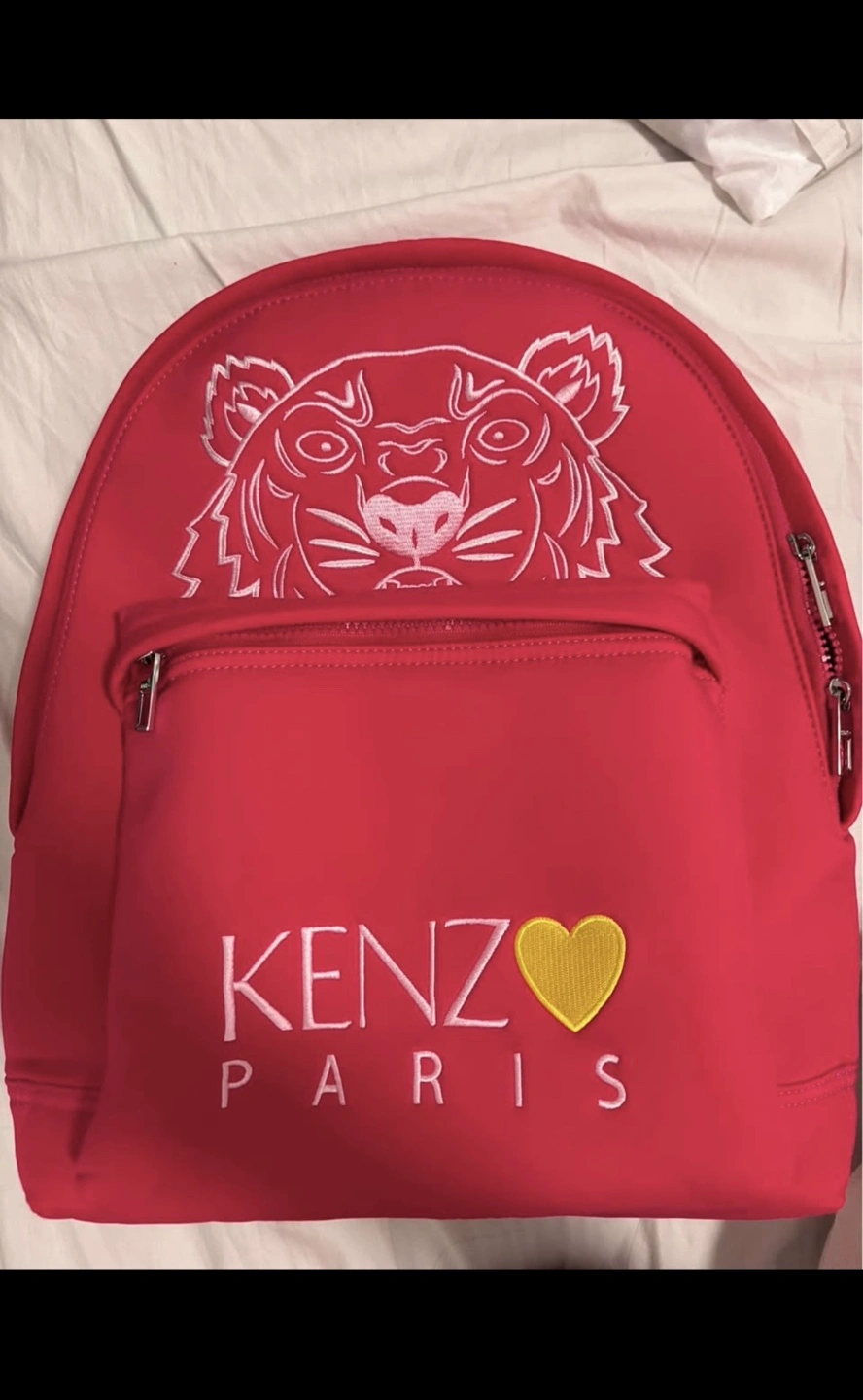 This is a KENZO Paris backpack with a cool tiger design! It's pink and in great condition. The original listing shows it was $390 CAD.