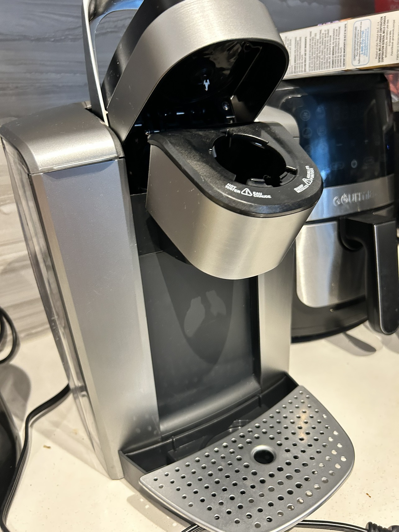 Used ocassionally, and this is the only keurig with approved reusable filter designed for home ground cofee brewers and universal k- cup! Easy to use and easy to clean and optimized to brew a cup of traveling mug! All parts still very good