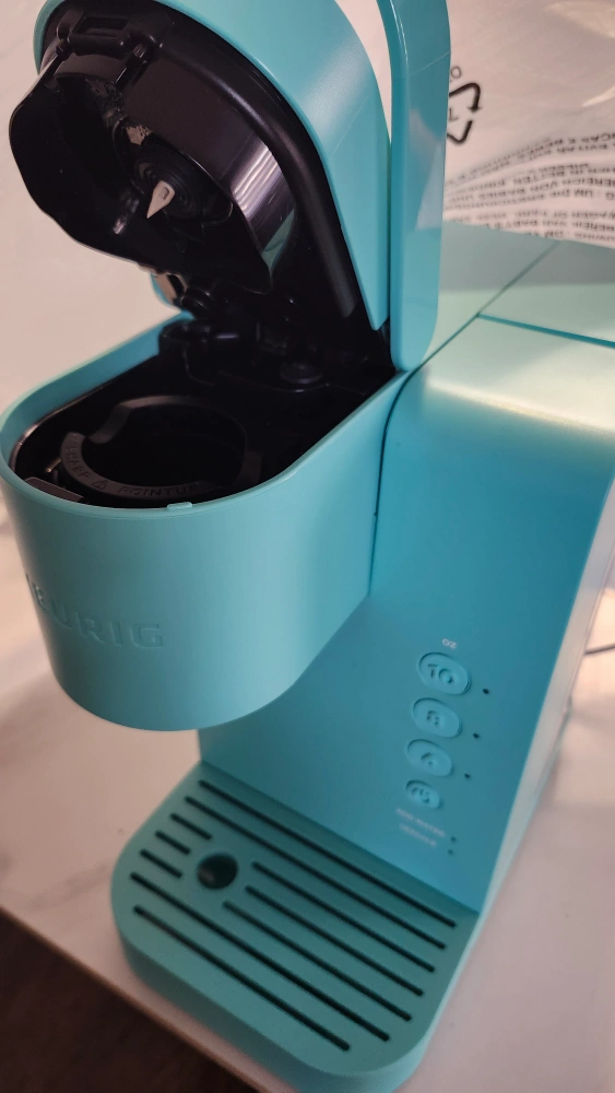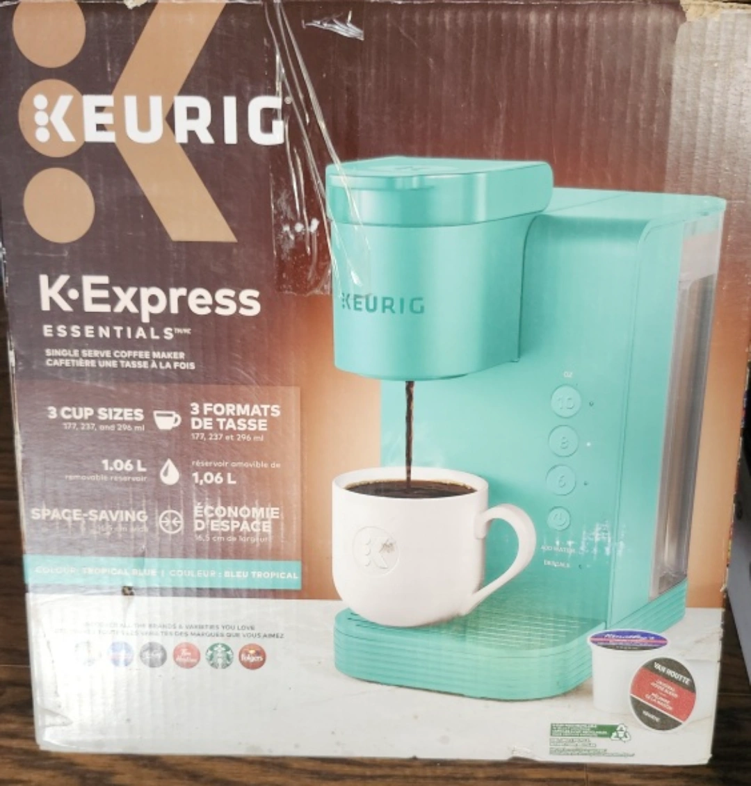 Selling a Keurig K-Express Essentials single serve coffee maker in a lovely teal colour! It's new and comes in box. This space-saving coffee maker can brew 3 cup sizes (177, 237, and 296 ml). Perfect for your daily caffeine fix! beautiful colouring accent new