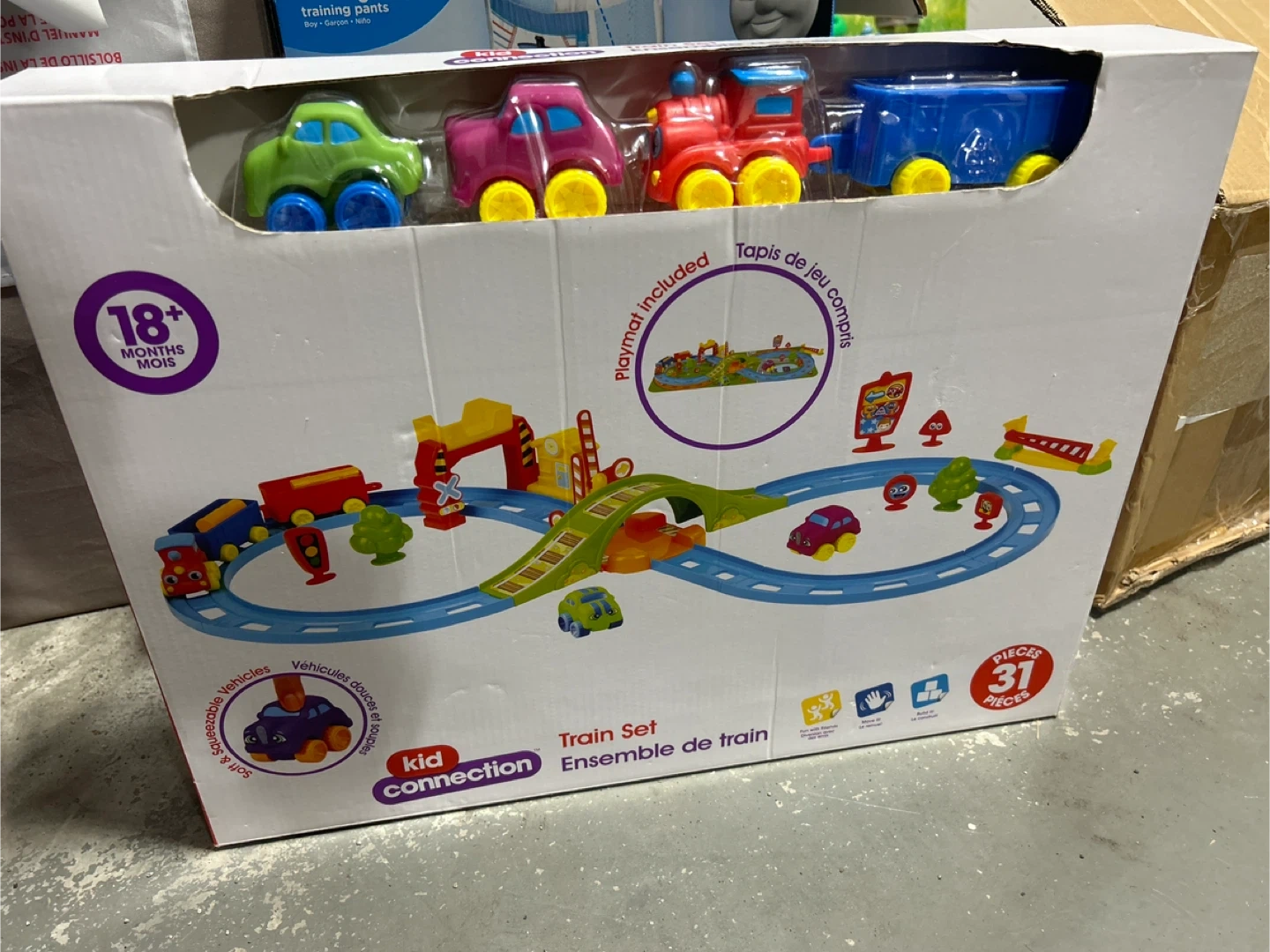 Selling a Kid Connection Train Set, perfect for little ones 18 months and up! This set comes with 31 pieces and includes a playmat for extra fun. The vehicles are soft and squeezable, making them safe and easy for small hands to play with