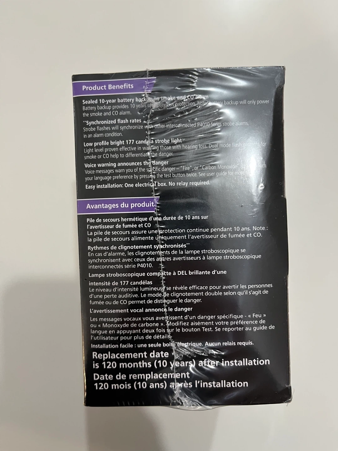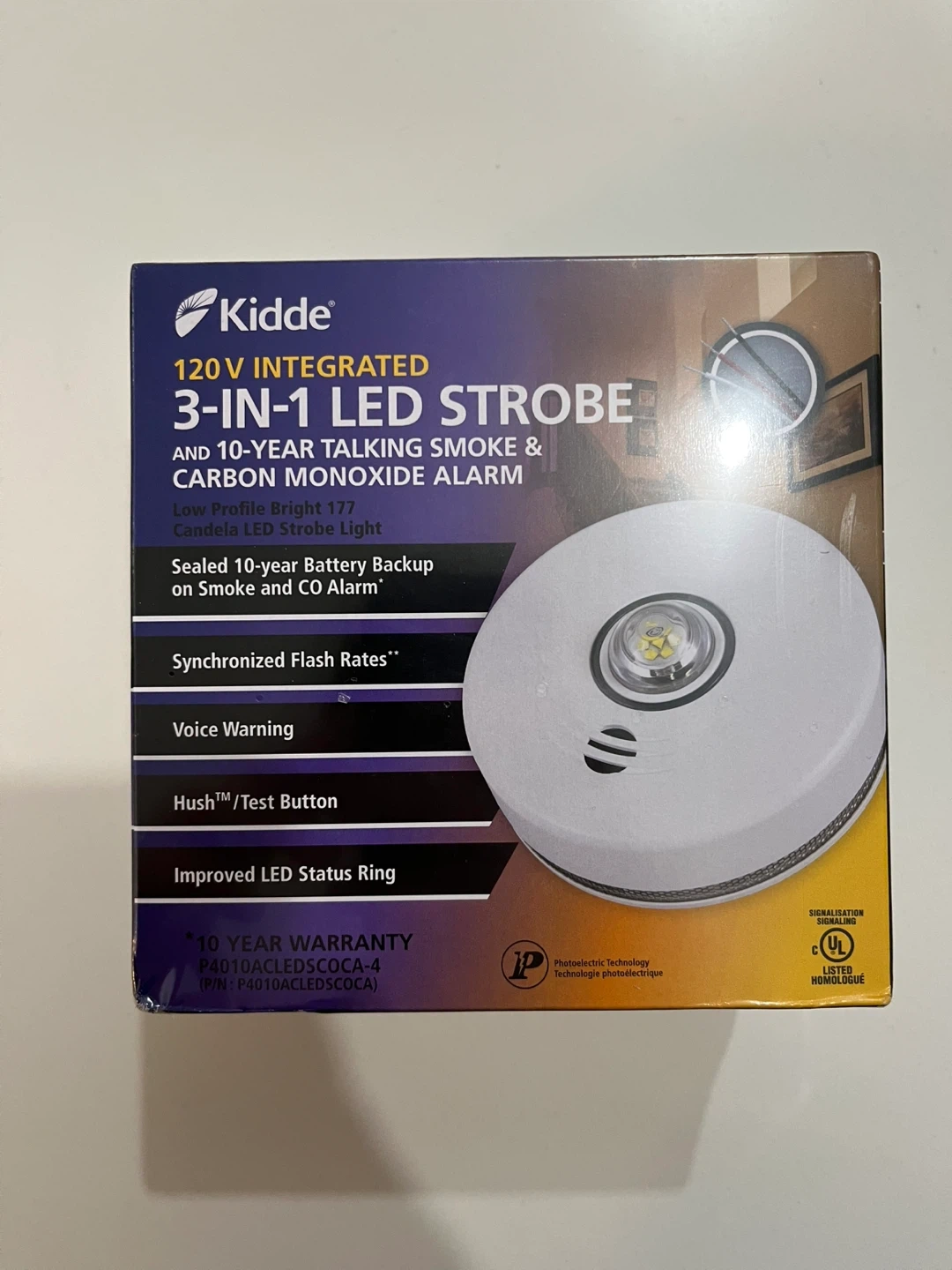 Selling a brand new Kidde 3-in-1 LED Strobe smoke and carbon monoxide alarm. It features a 120V integrated system with a 10-year talking alarm. The low profile bright 177 candela LED strobe light ensures clear visibility. Also includes a sealed 10-year battery backup for smoke and CO alarm. The box is included!